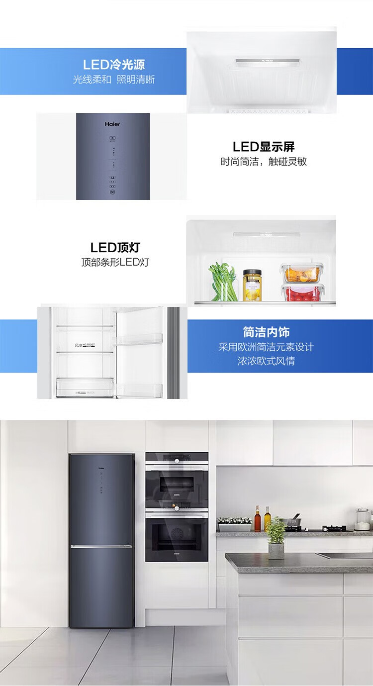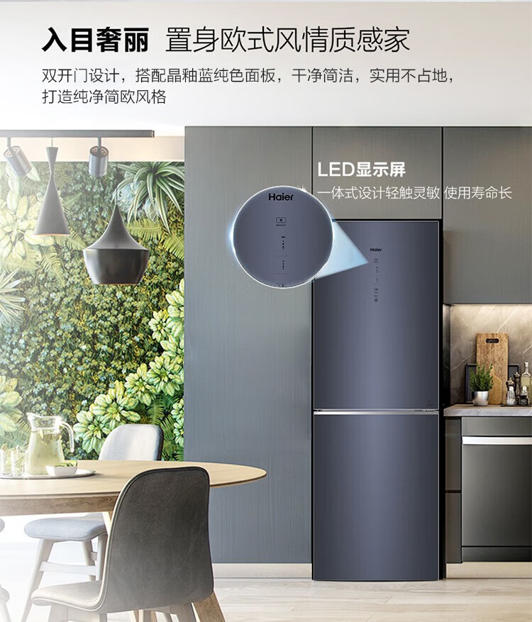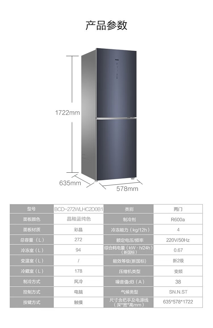 海尔(Haier)冰箱 BCD-272WLHC2D0B1 272升晶釉蓝晶釉蓝变频风冷无霜冰箱
