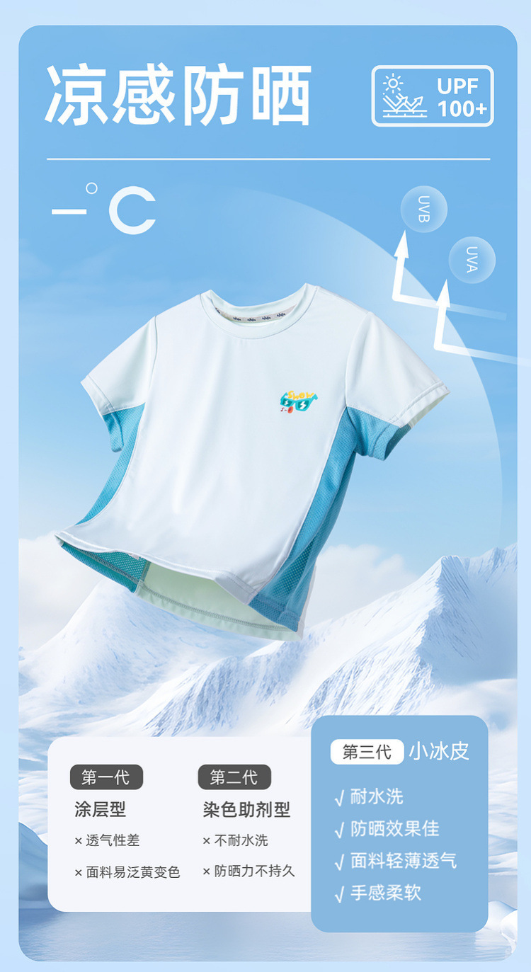 【UPF100+】嘟嘟家儿童短袖T恤夏季宝宝防晒上衣男童凉感体恤童装