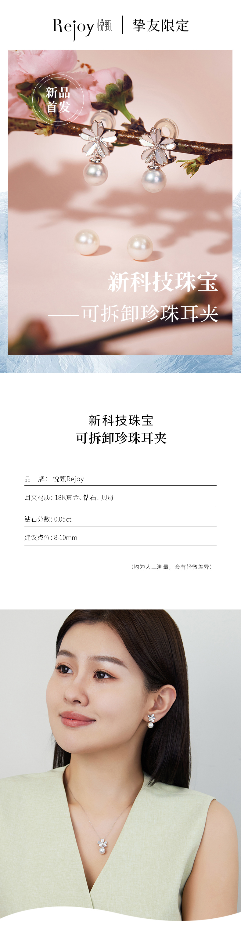【黑科技】 耳夹黑科技樱花-可拆卸珍珠耳夹(会员享试戴权益,定制后不支持7天无理由退换货)