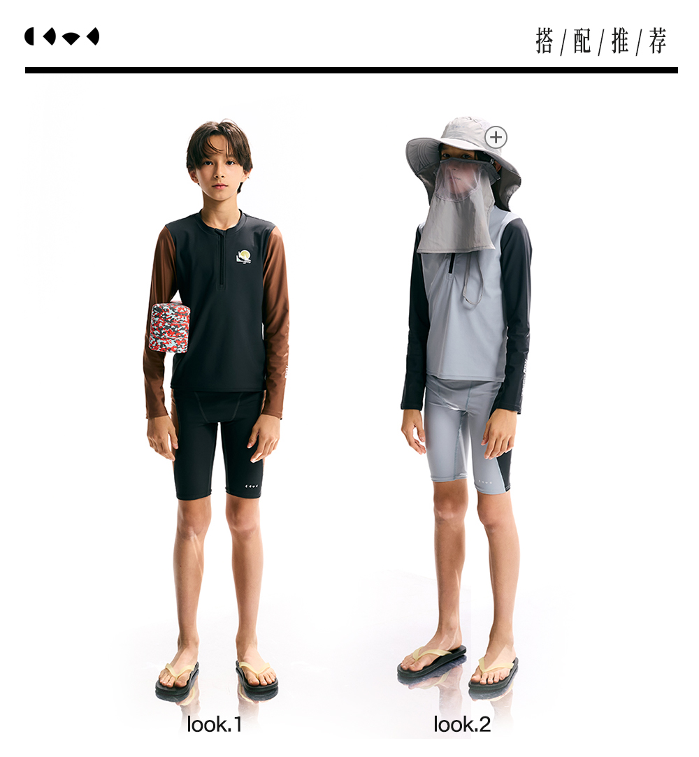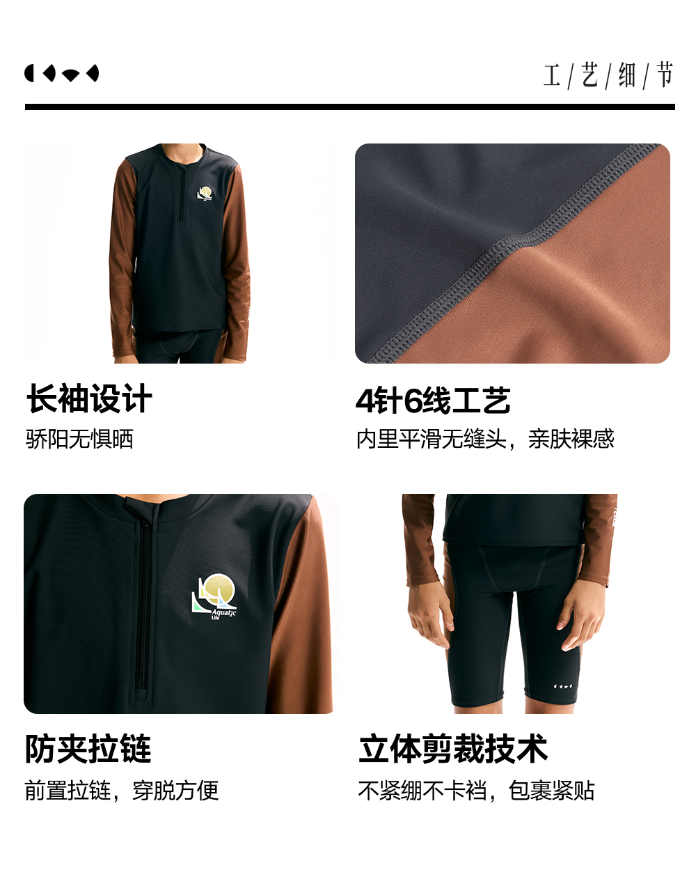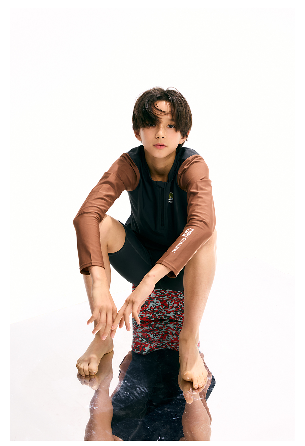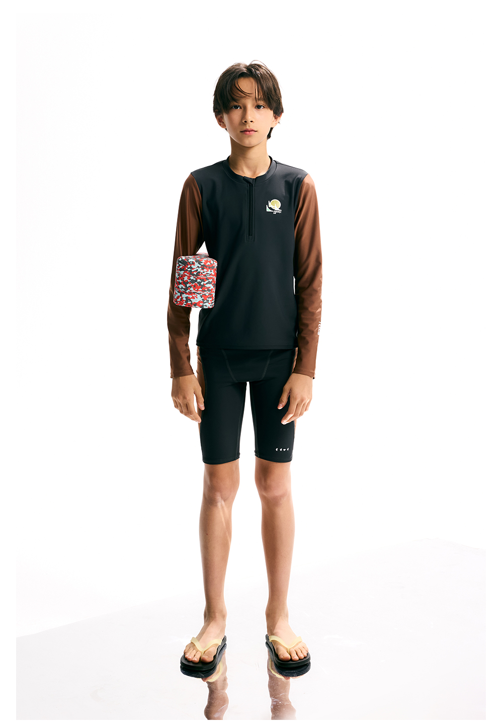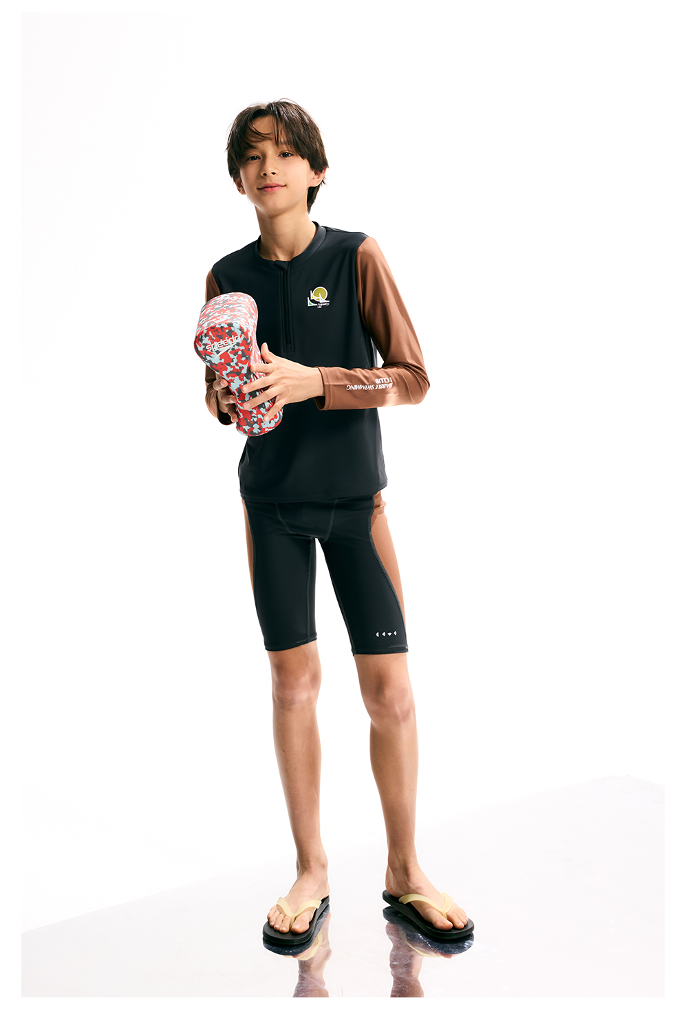 chopiyopi童装 儿童拼接长袖短裤分体泳衣