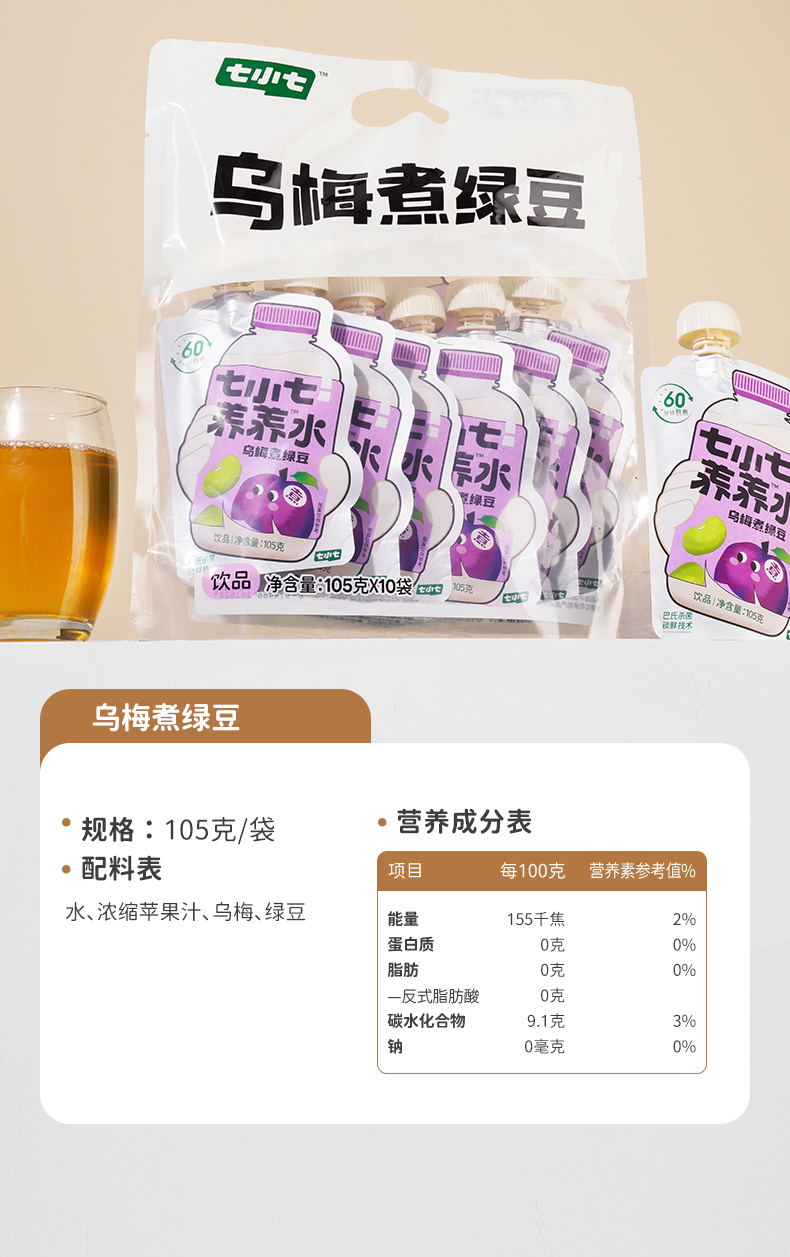 七小七养养水乌梅煮绿豆苹果汁儿童版酸梅汤饮料独立包装夏日饮品