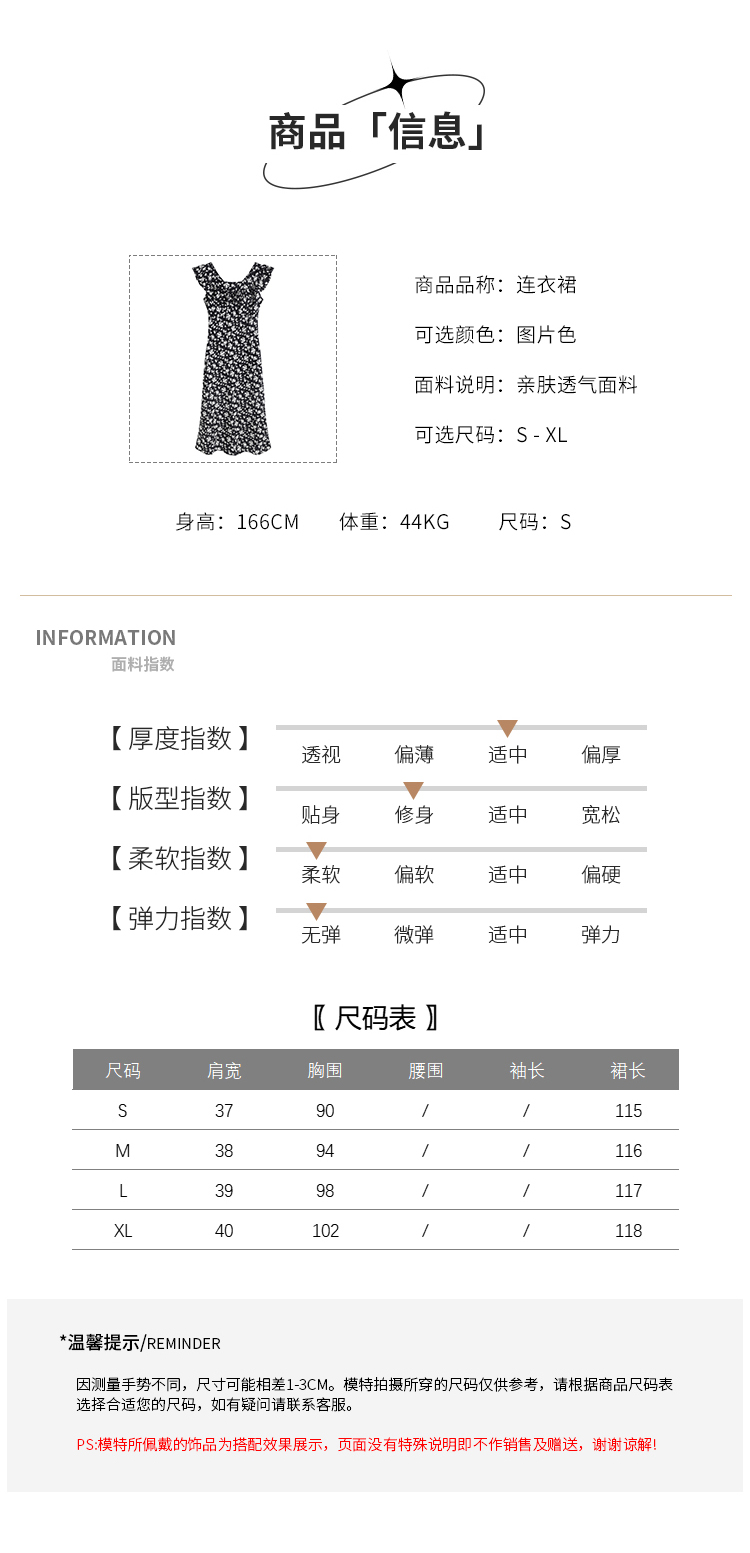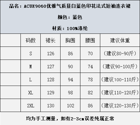 XL:裙长113 胸围98 腰围80 袖长24 肩宽34