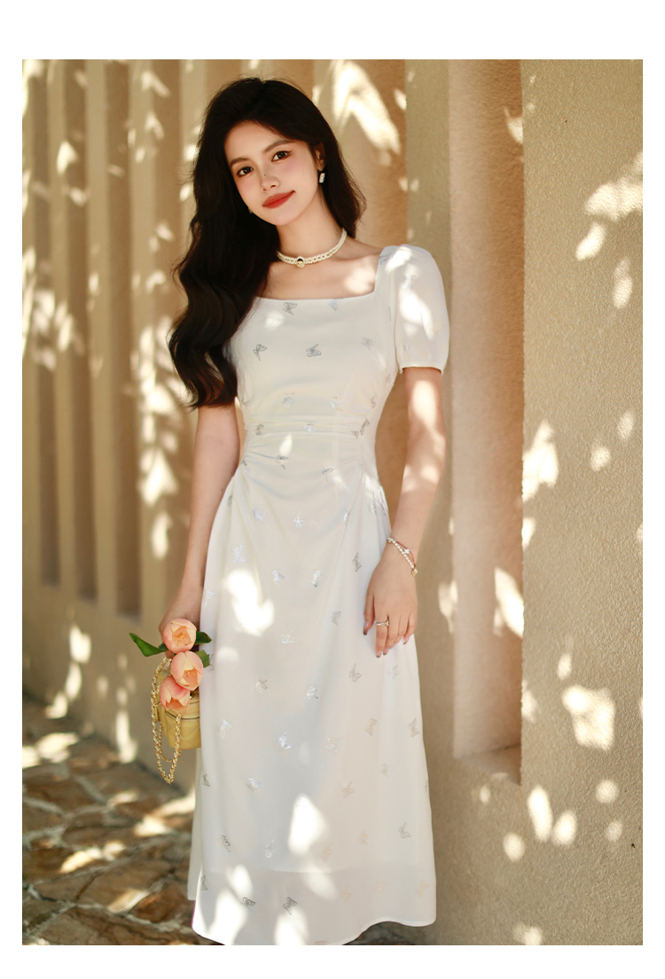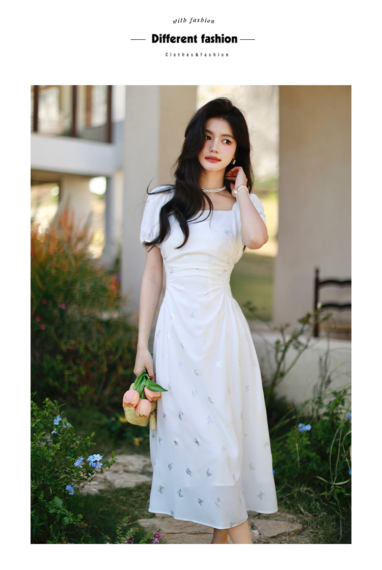 ACUE9928蝴蝶印花修身连衣裙-S-XL--