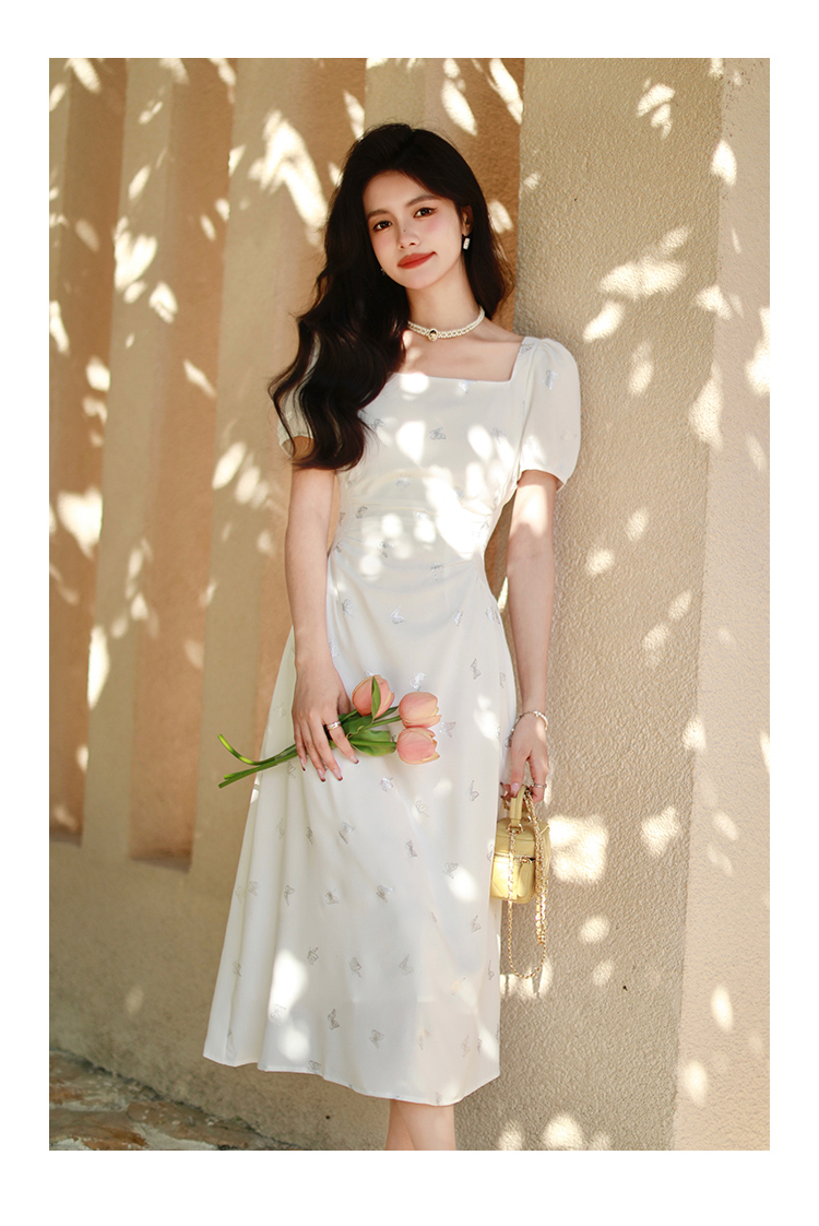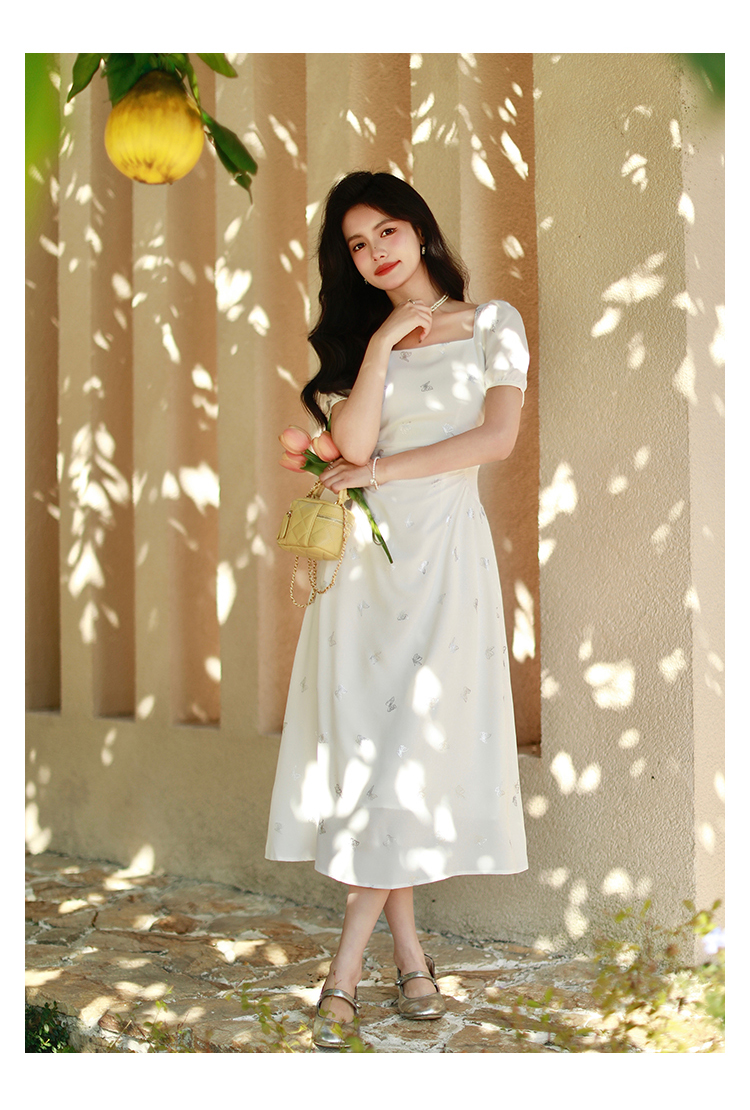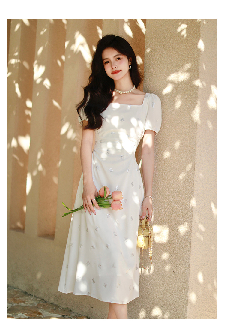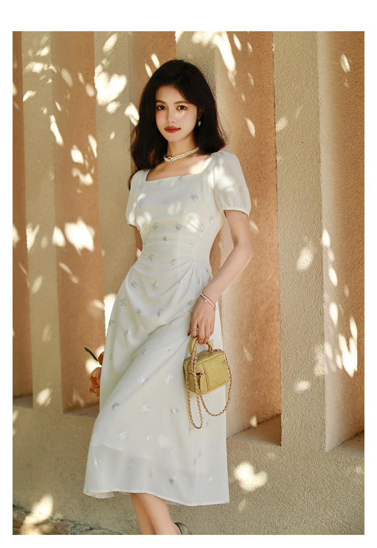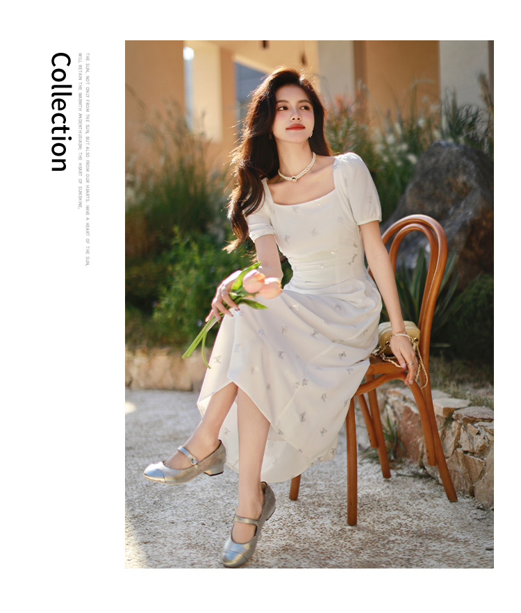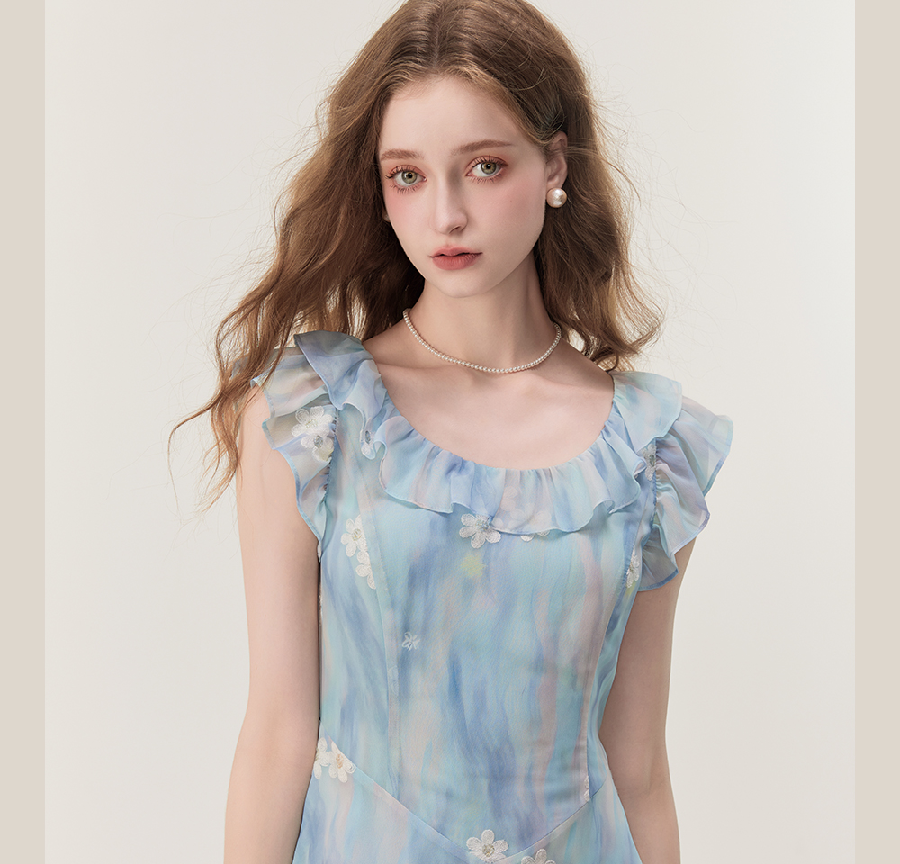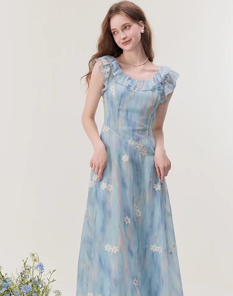 ACUE9061渐变绣花U型领连衣裙-S-XL-