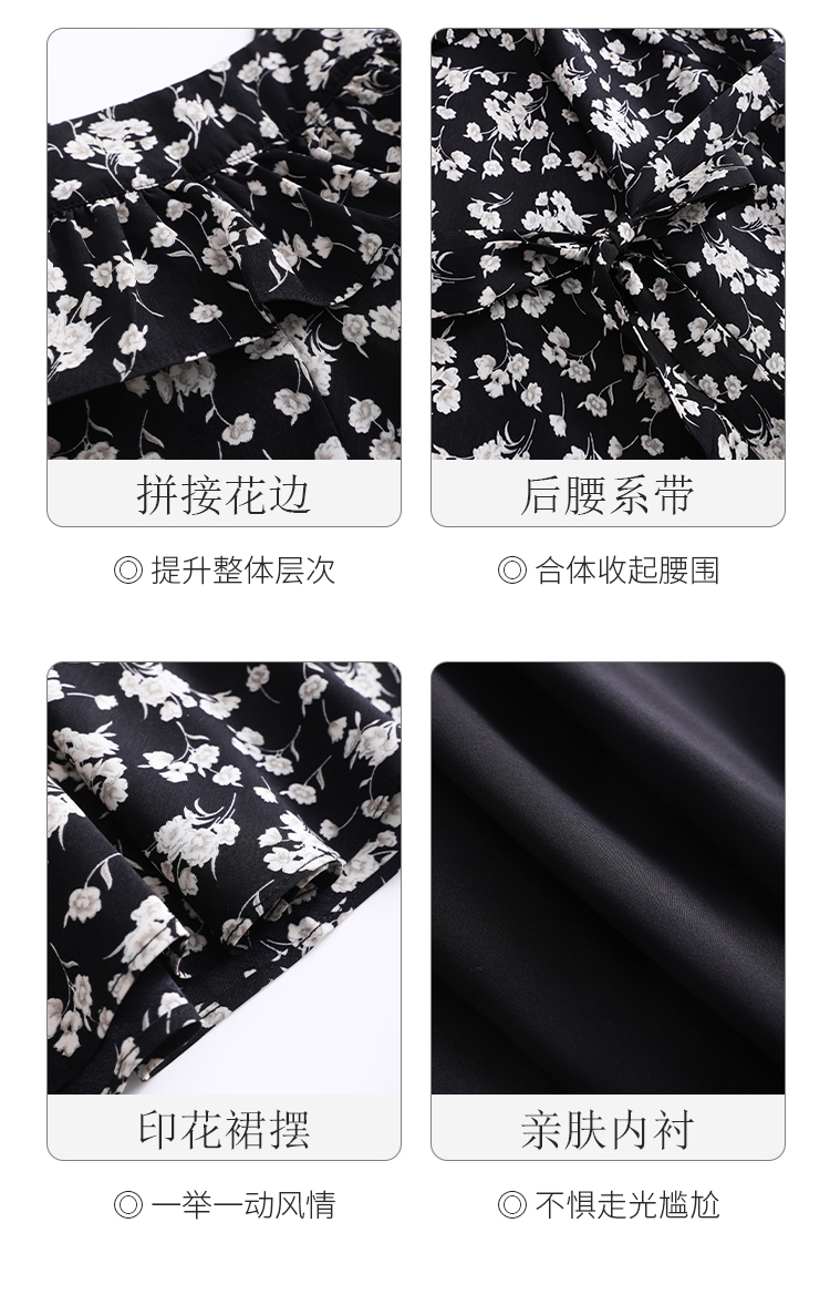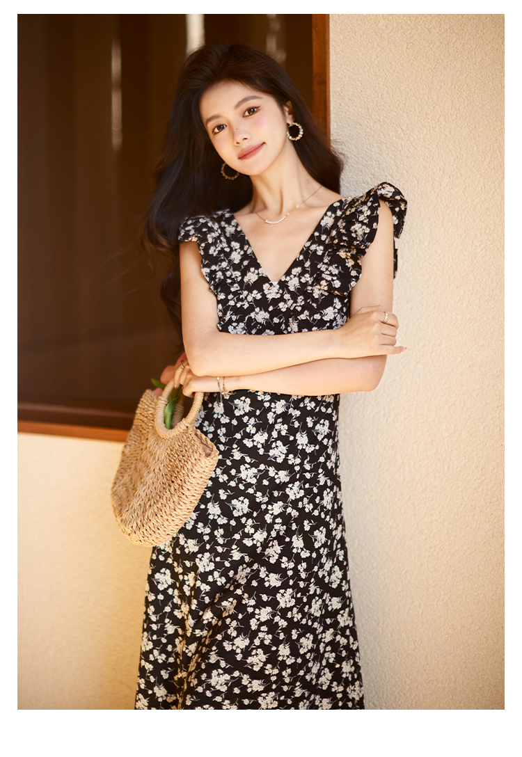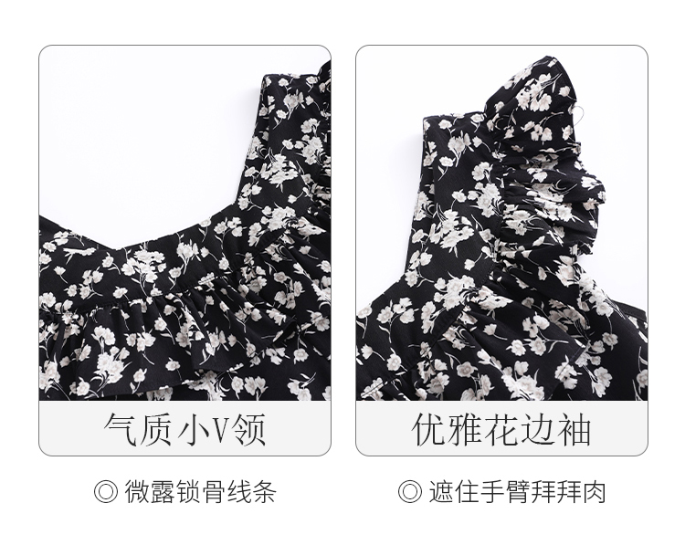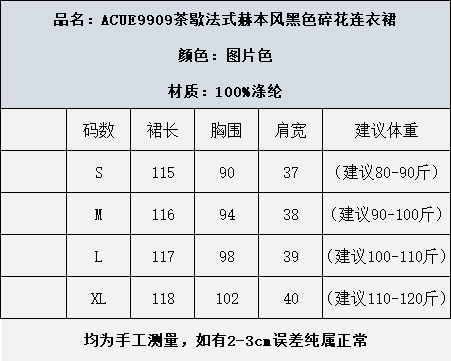 ACUE9909茶歇法式赫本风黑色碎花连衣裙-S-XL-