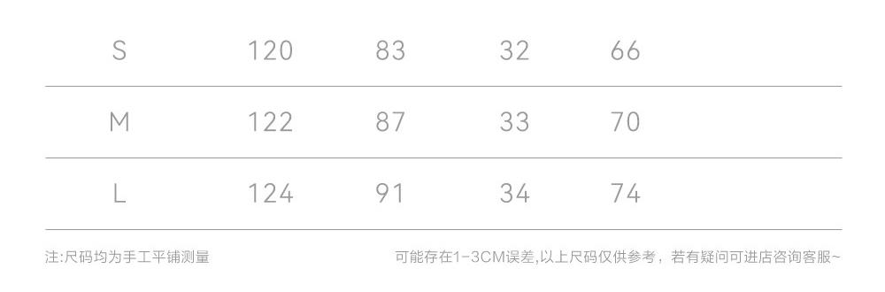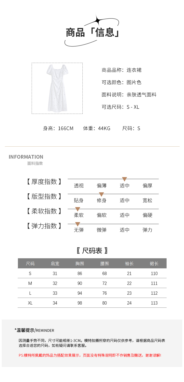 S:裙长110 胸围86 腰围68 袖长21 肩宽31