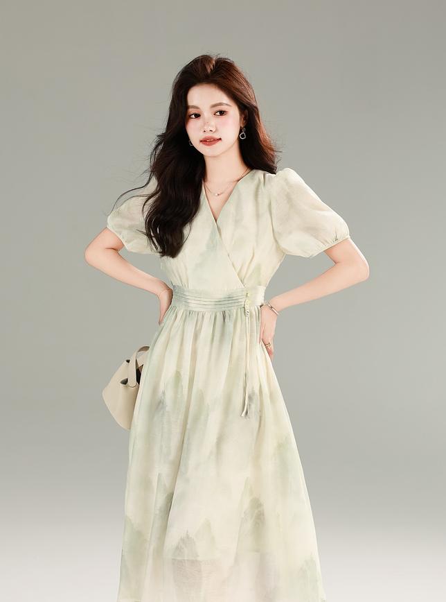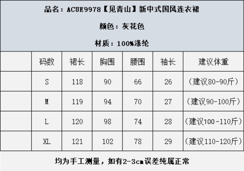 ACUE9978【见青山】新中式国风连衣裙-S-XL-