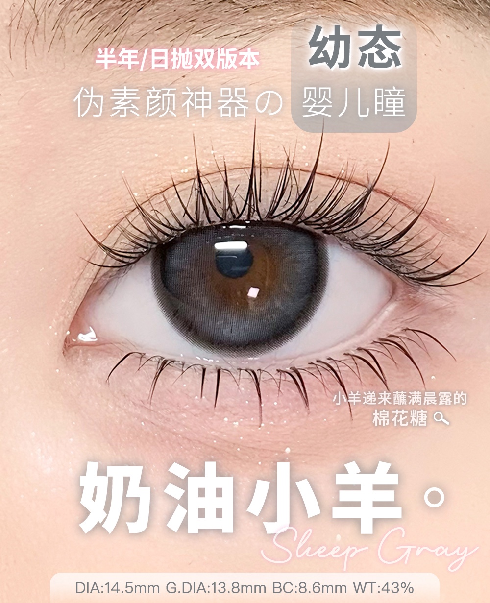 puff girl日抛 奶油小羊 灰/姜饼小熊 棕 14.5mm 日抛无售后!