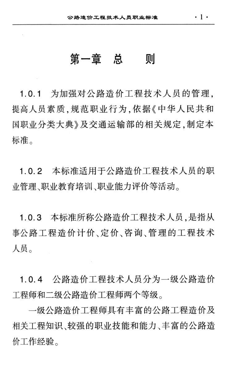| 公路造价工程技术人员职业标准 | ||