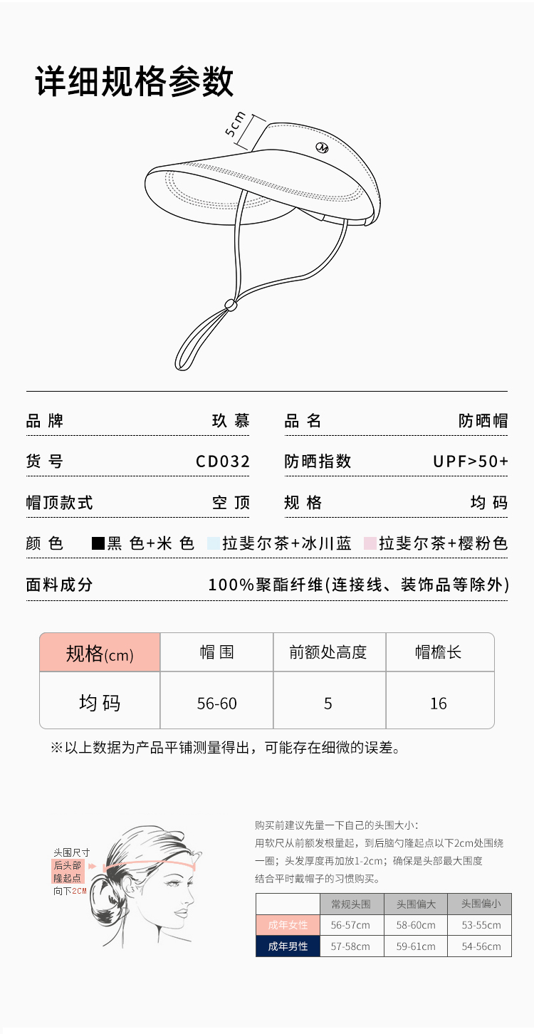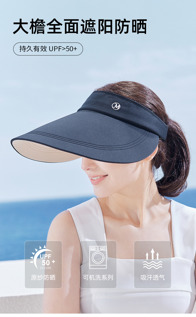 【JIUMU玖慕】卡箍式长帽檐防晒帽 空顶防紫外线户外大帽檐遮阳帽沙滩帽