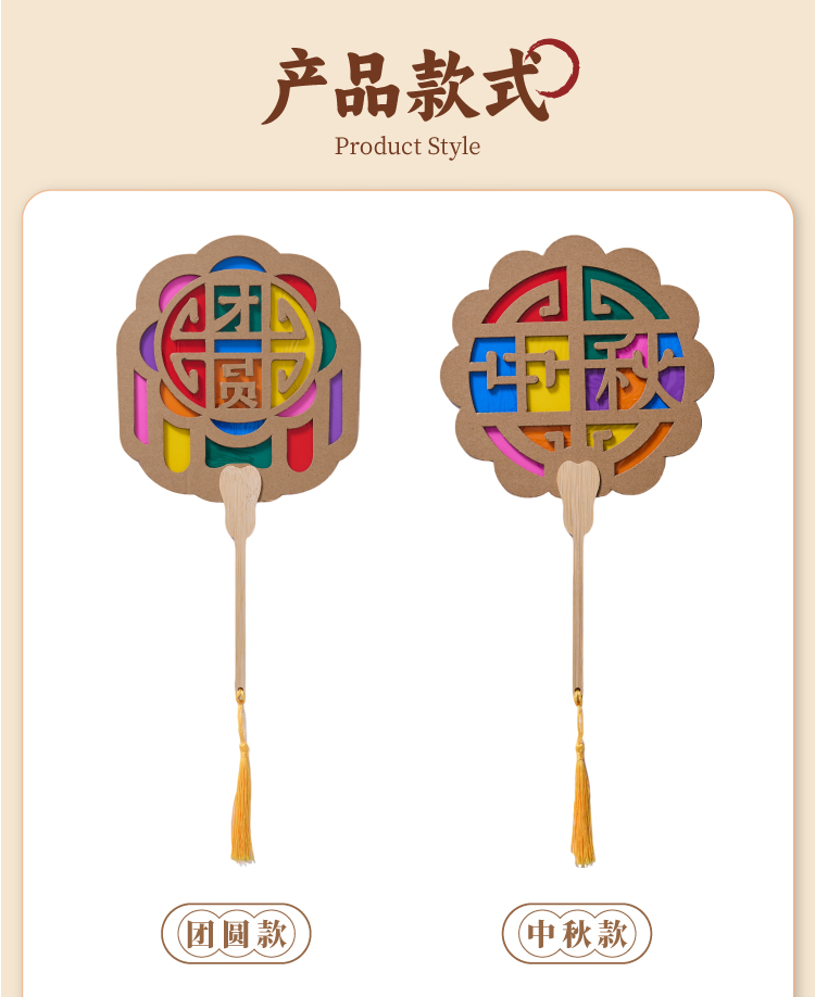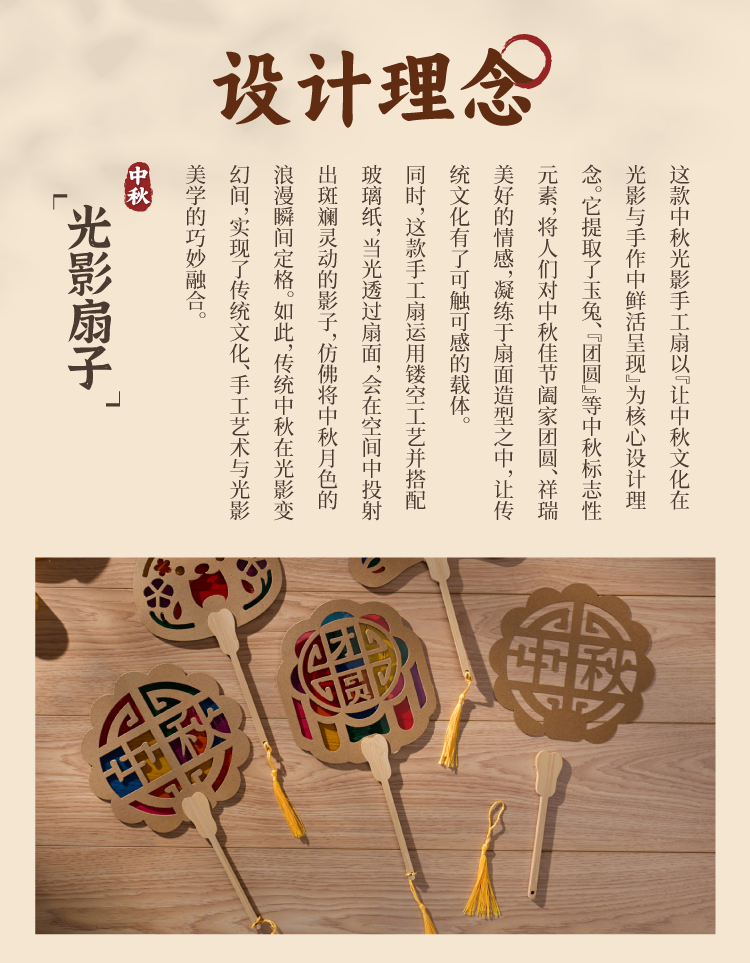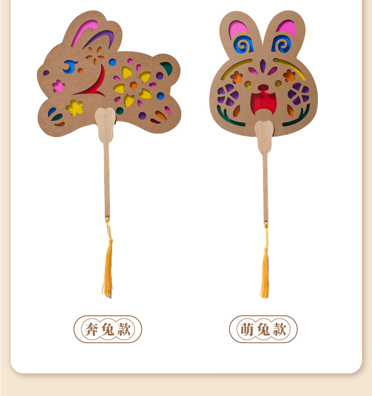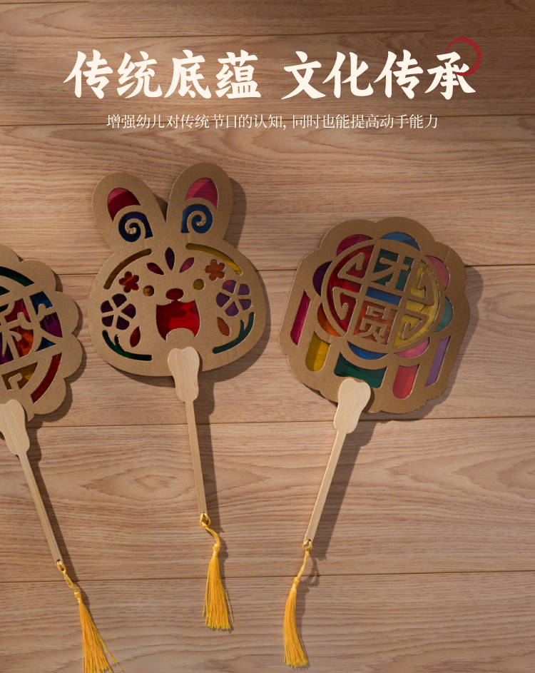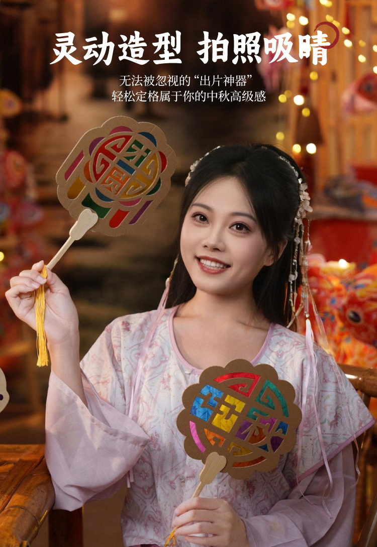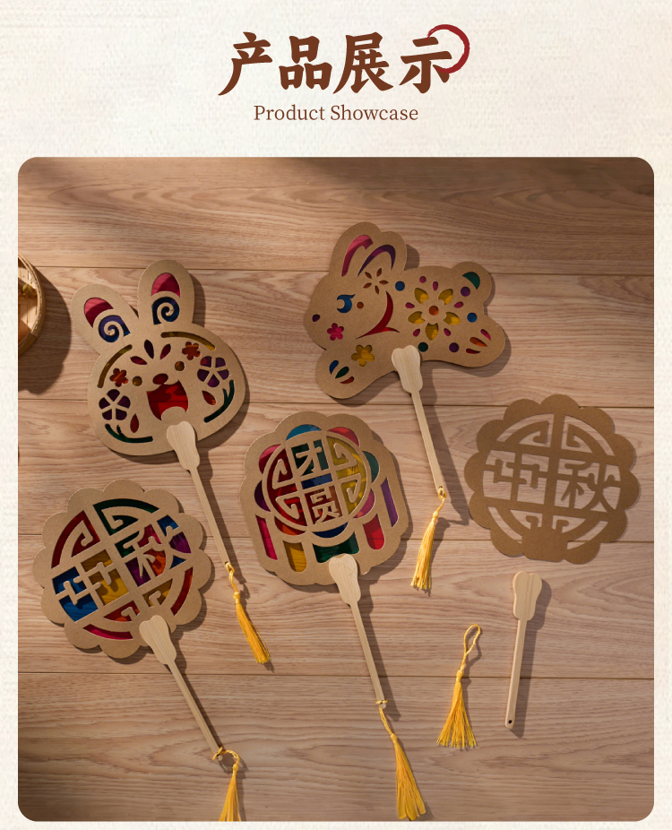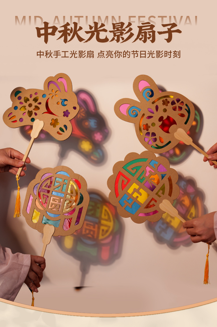 【供】中秋节活动礼物光影扇子儿童制作材料包幼儿园非遗兔子月饼团扇