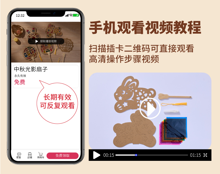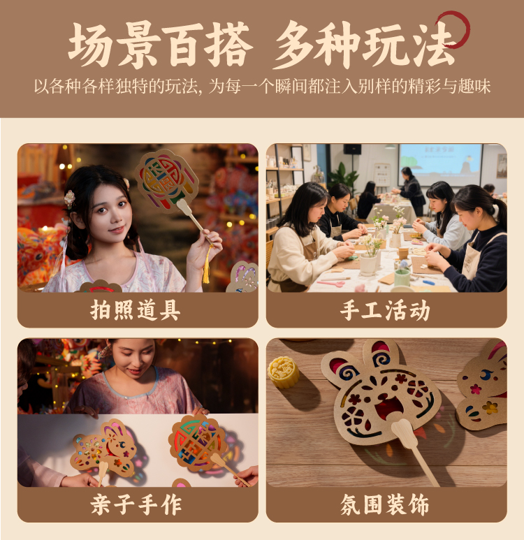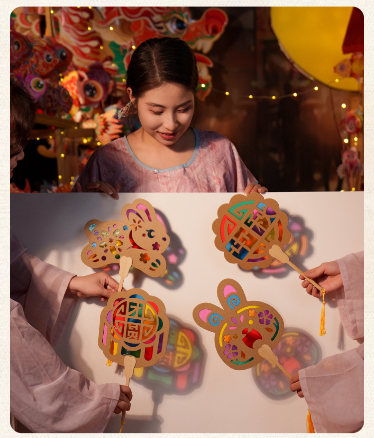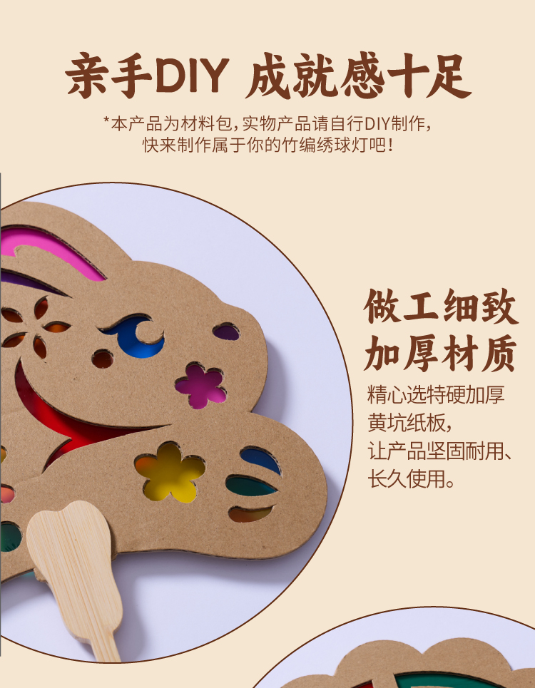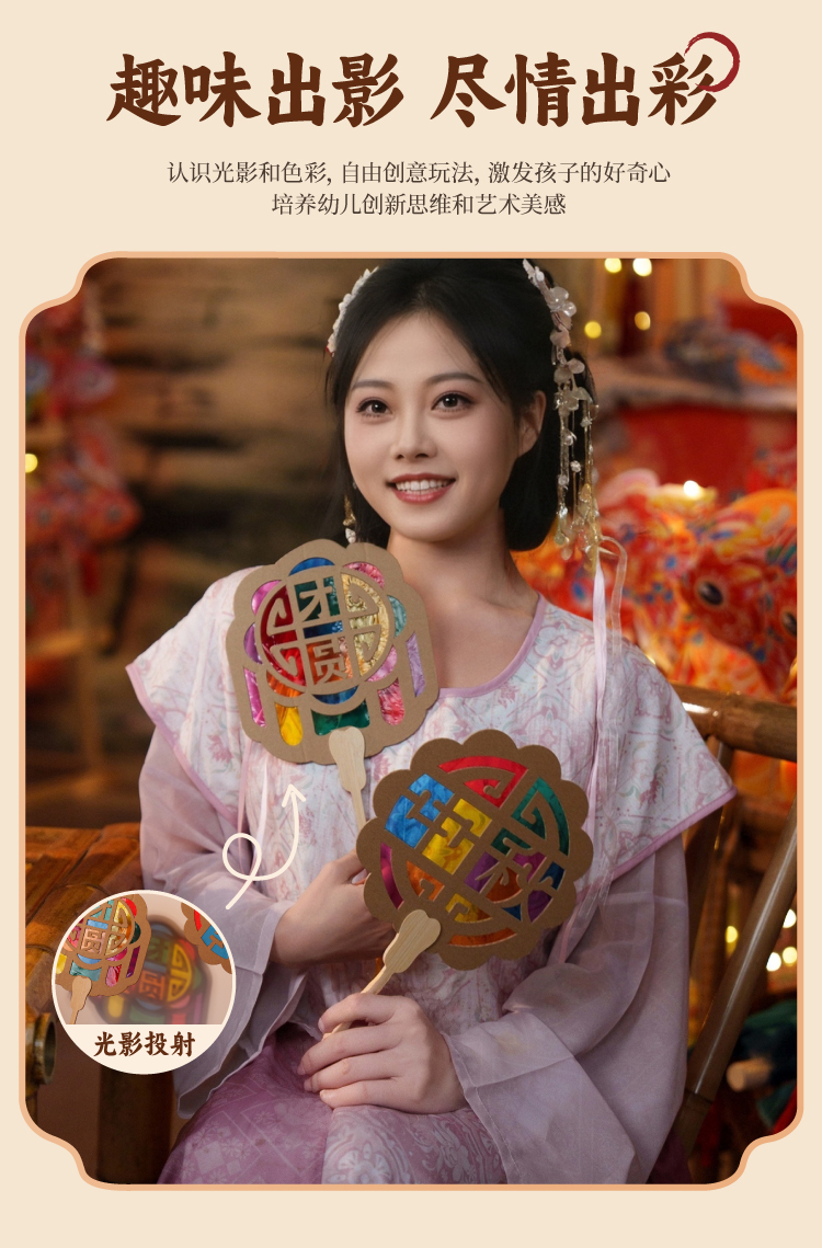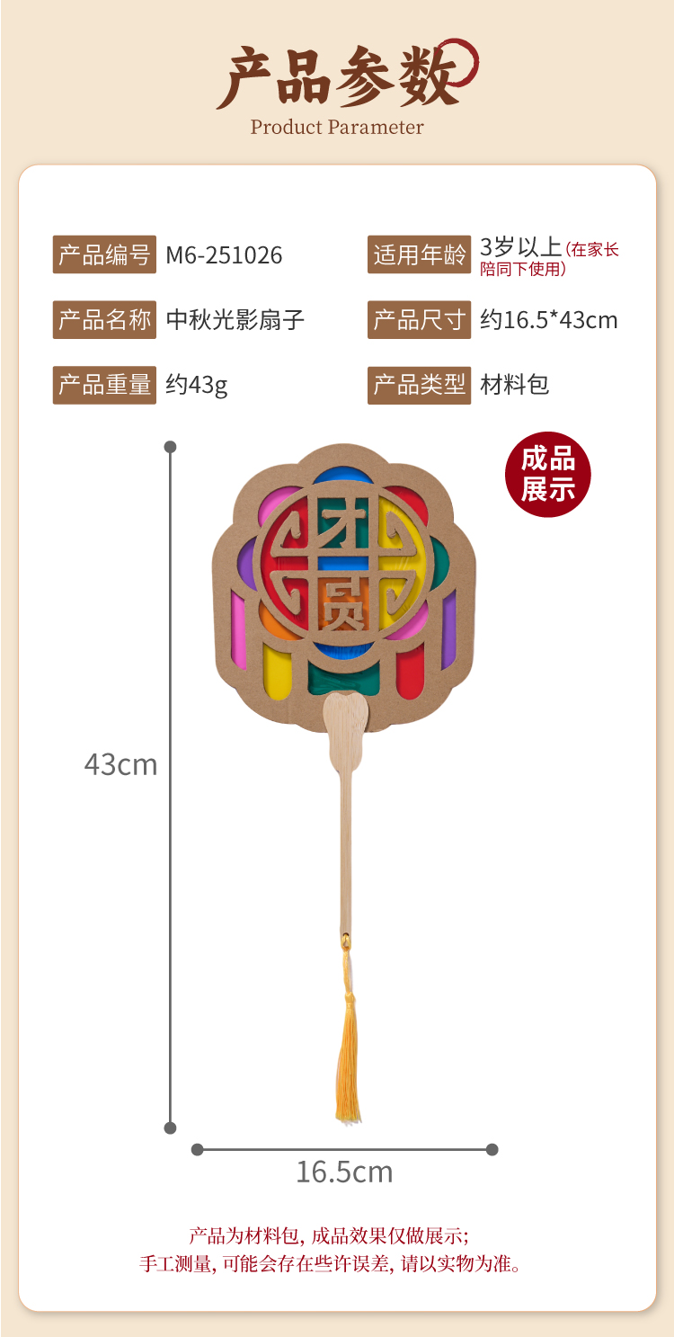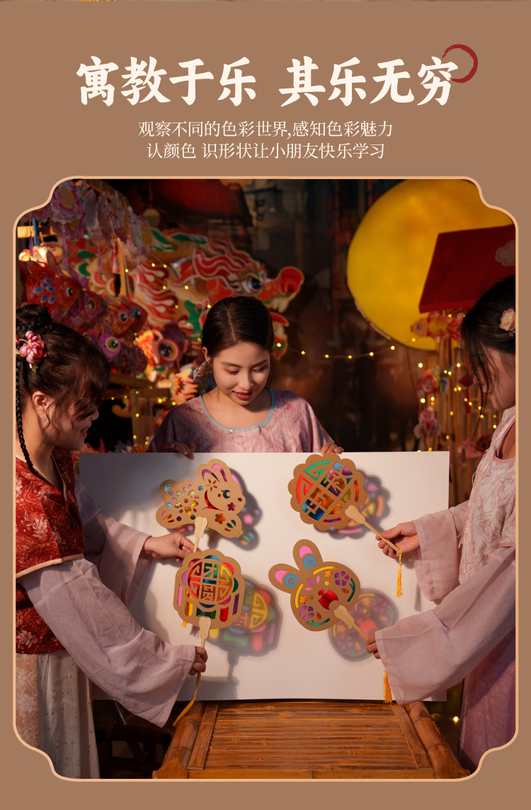 【供】中秋节活动礼物光影扇子儿童制作材料包幼儿园非遗兔子月饼团扇