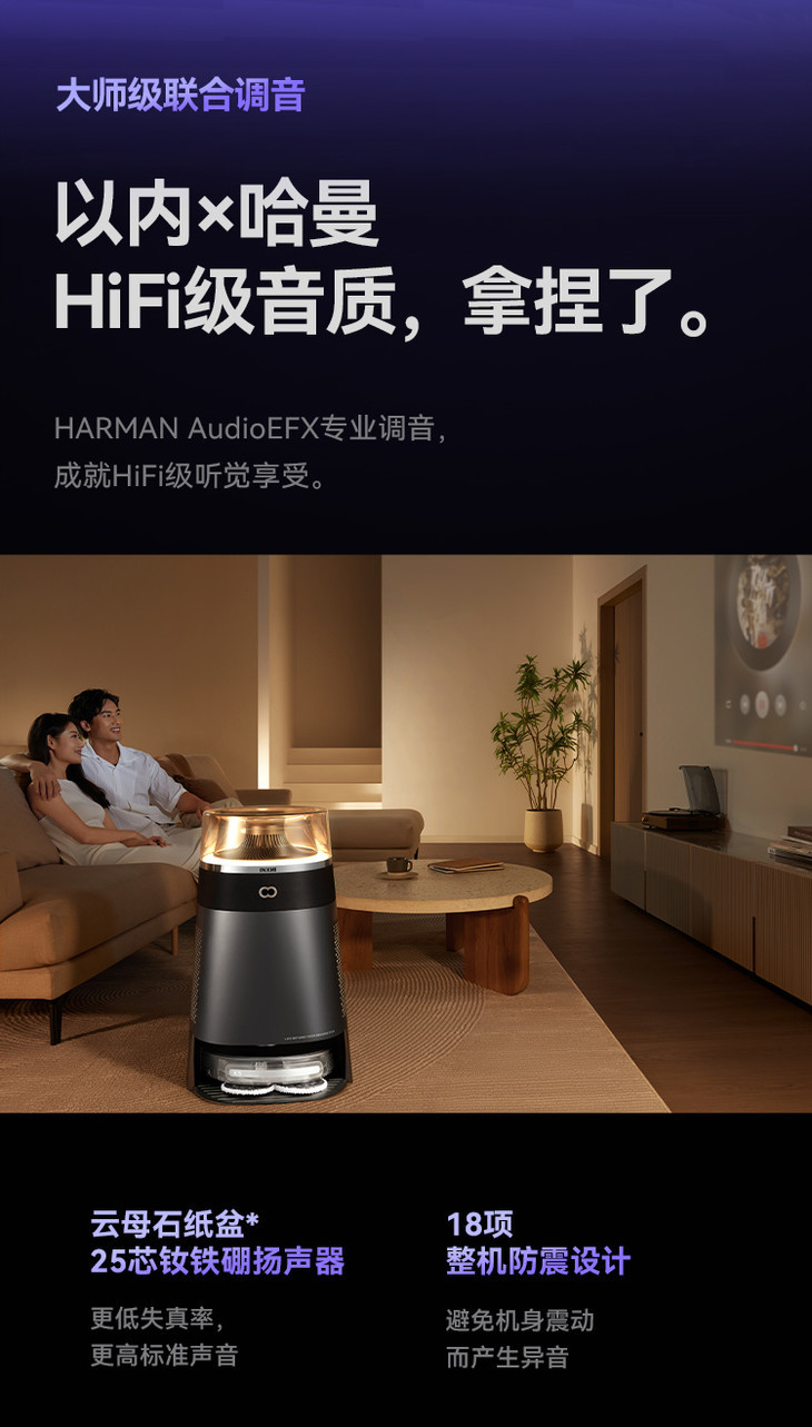 以内首次和哈曼联合调音 HARMAN AudioEFX专业调音,成就HiFi级听觉享受! 立体音效,在家演唱会想开就开!