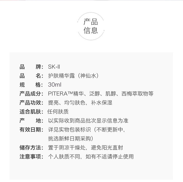 【跨境】SK-II 神仙水小样 30ml 青春露 补水保湿 护肤精华露 旅行装(效期到27年9月)