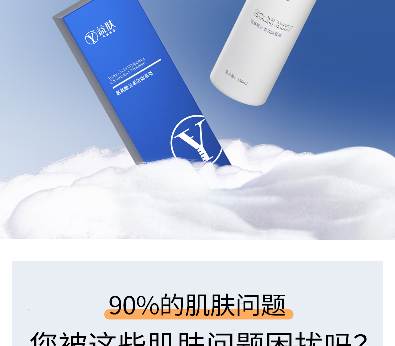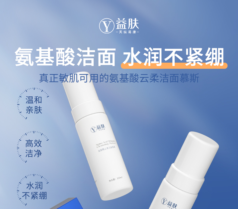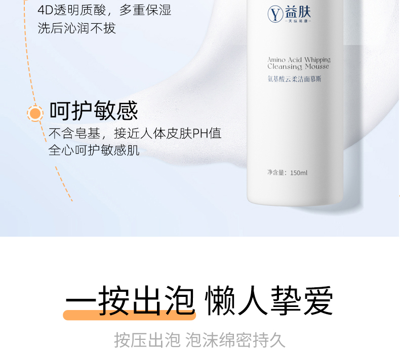 益肤氨基酸云柔洁面慕斯 (白瓶洗面奶)150ml/瓶