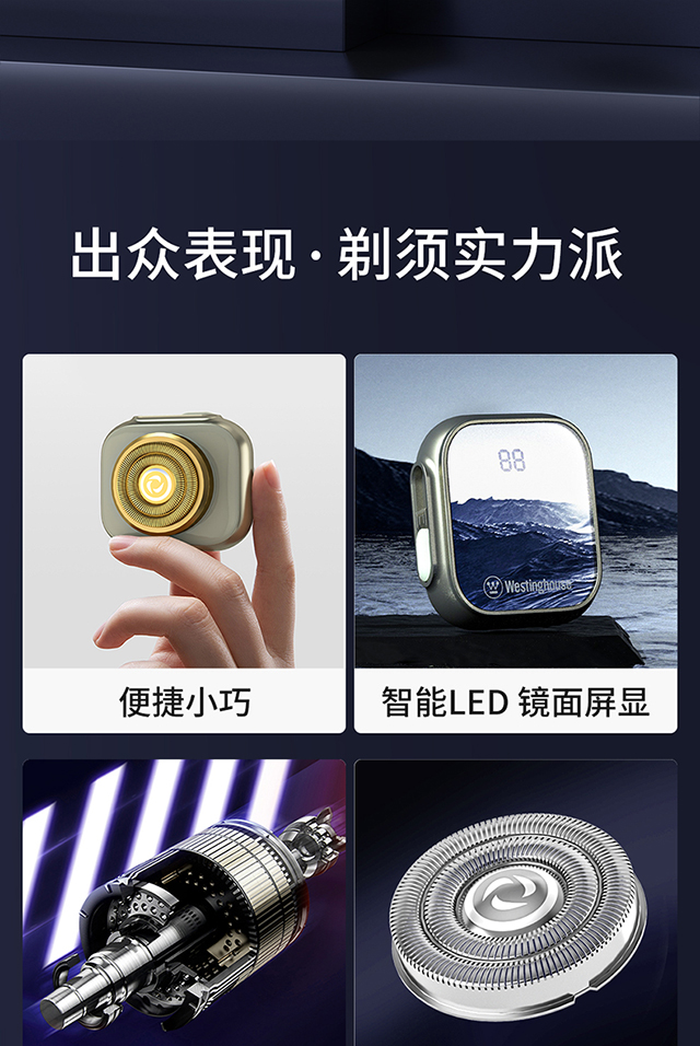 【单头双环弧面刀网 剃须刀】🎁美国西屋G10涡轮小钢炮剃须刀🪒便携式旅行迷你全身水洗剃须刀✅超高清镜面屏显 ✅双环弧面刀网,360度浮动贴面剃须 ✅干湿两用