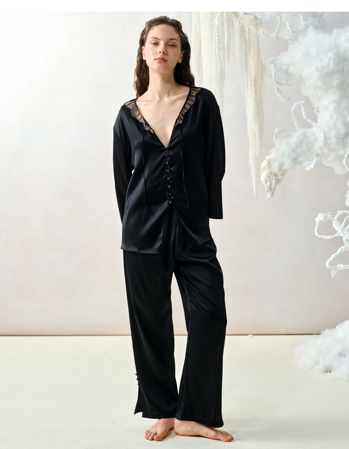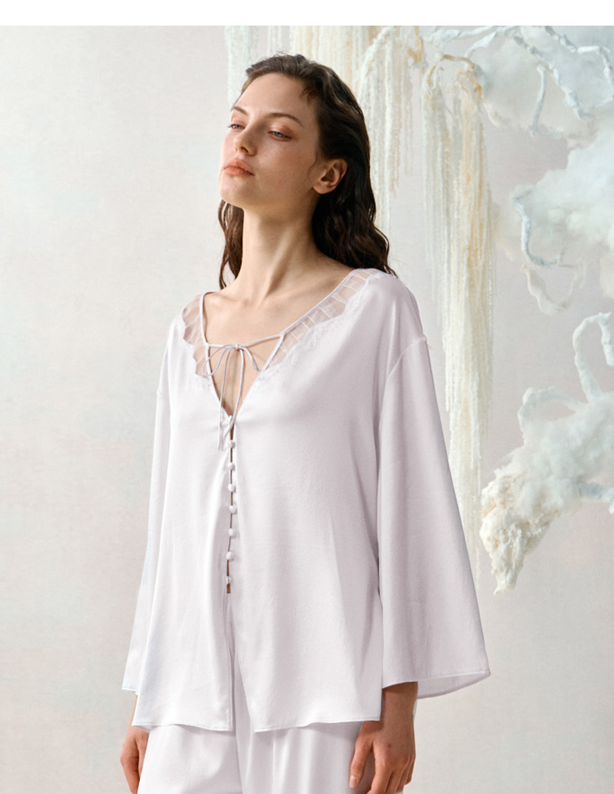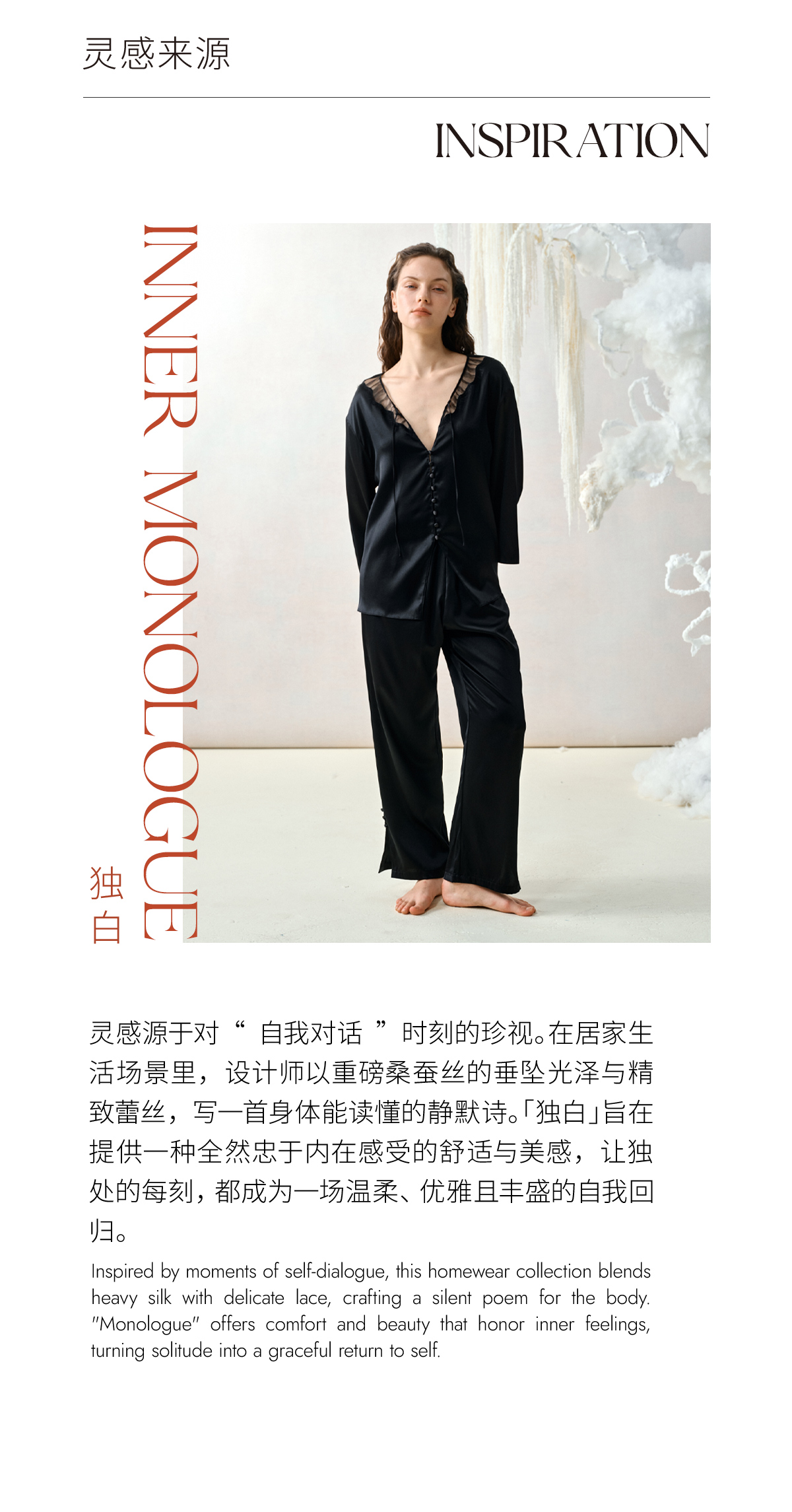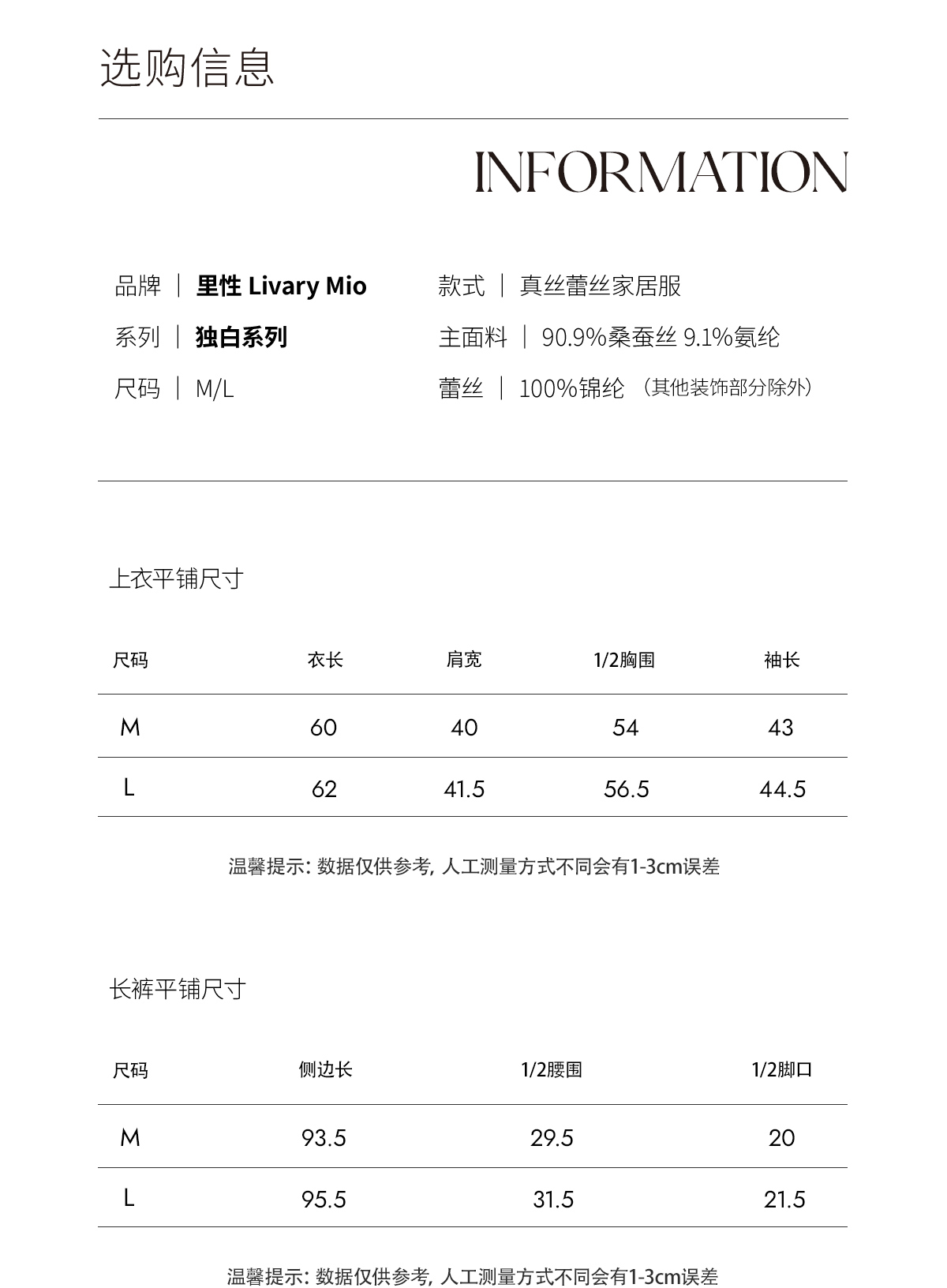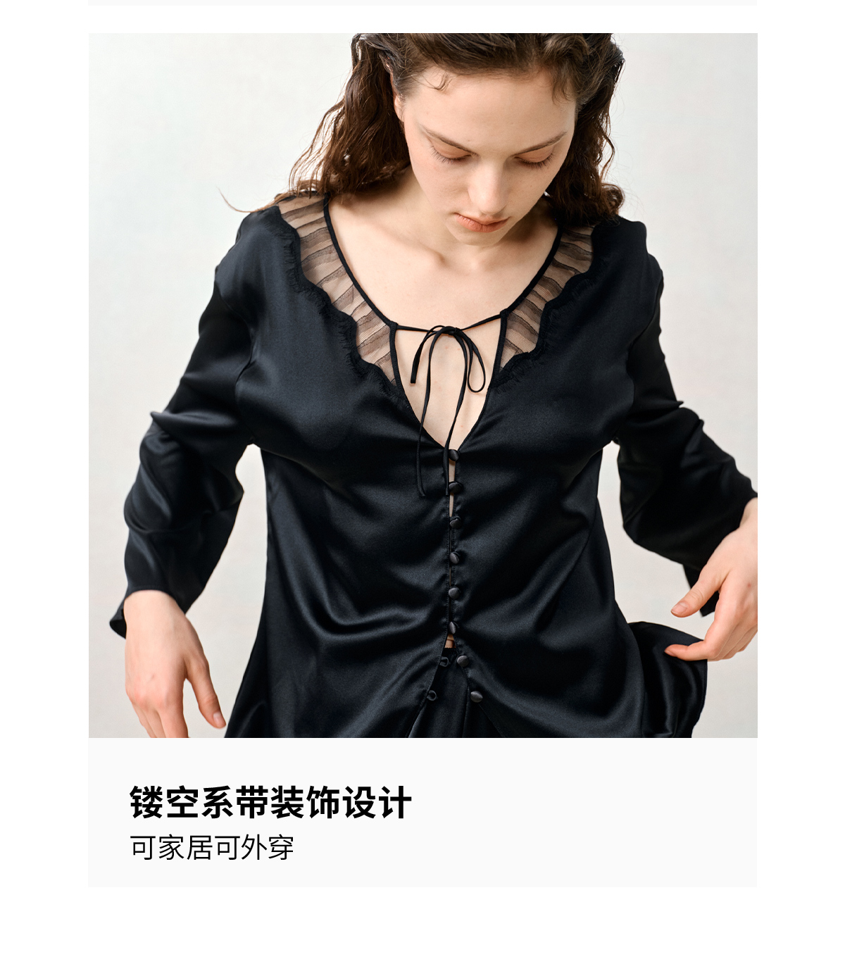 里性 LIVARY MIO 独白 法式真丝蕾丝刻花家居服套装长袖可外穿睡衣