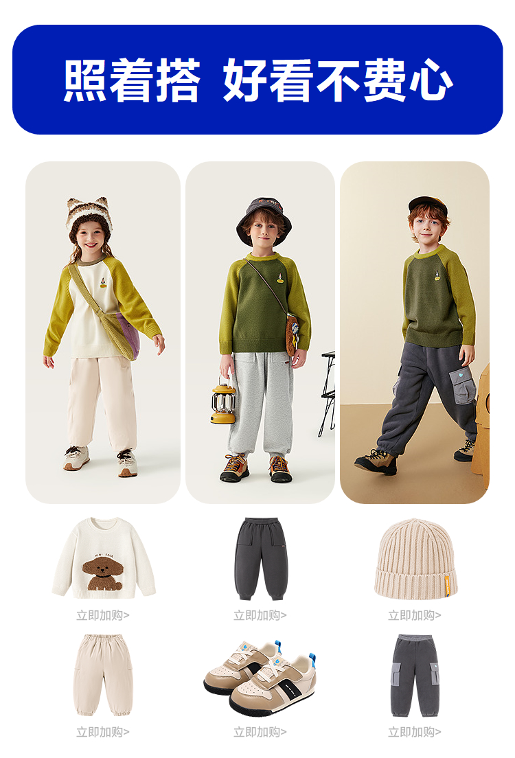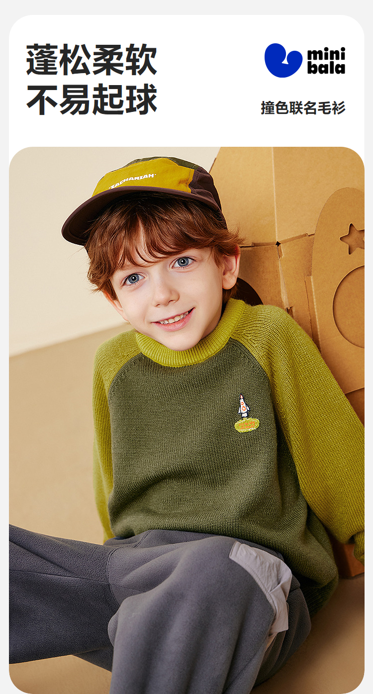 迷你巴拉男童儿童毛衫2025冬新品亲肤不易起球掉毛帅气户外风毛衣