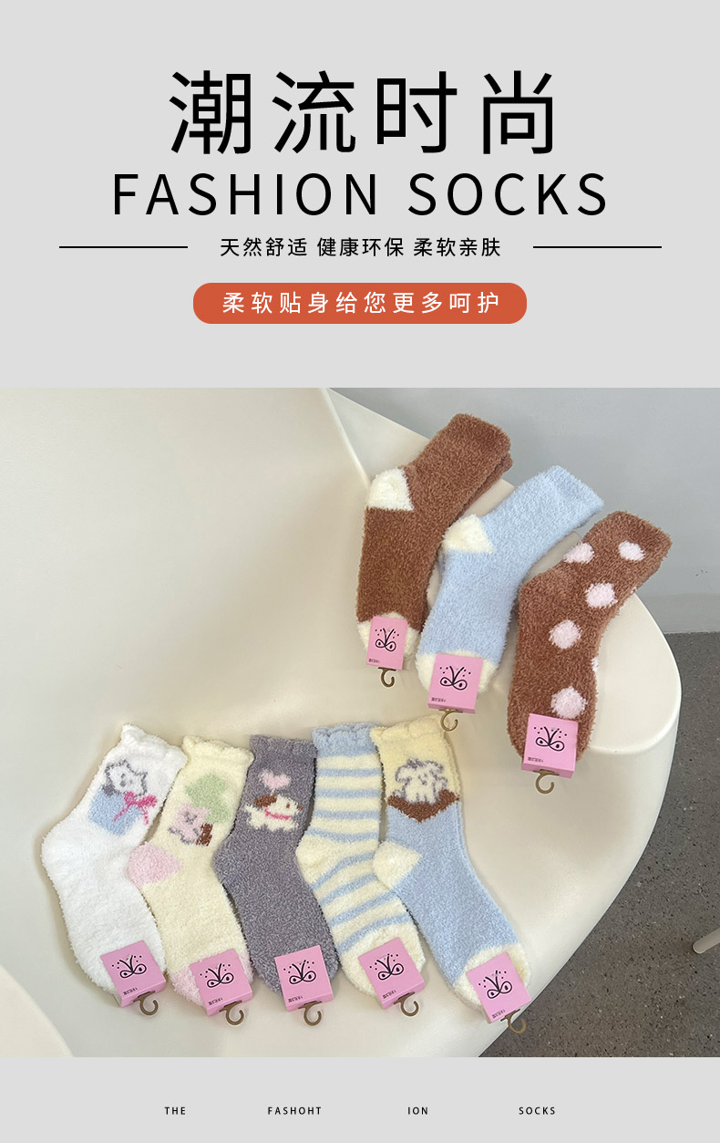 冬暖居家绒趣卡通百搭中筒女袜-纪念日百货门店同款165844228