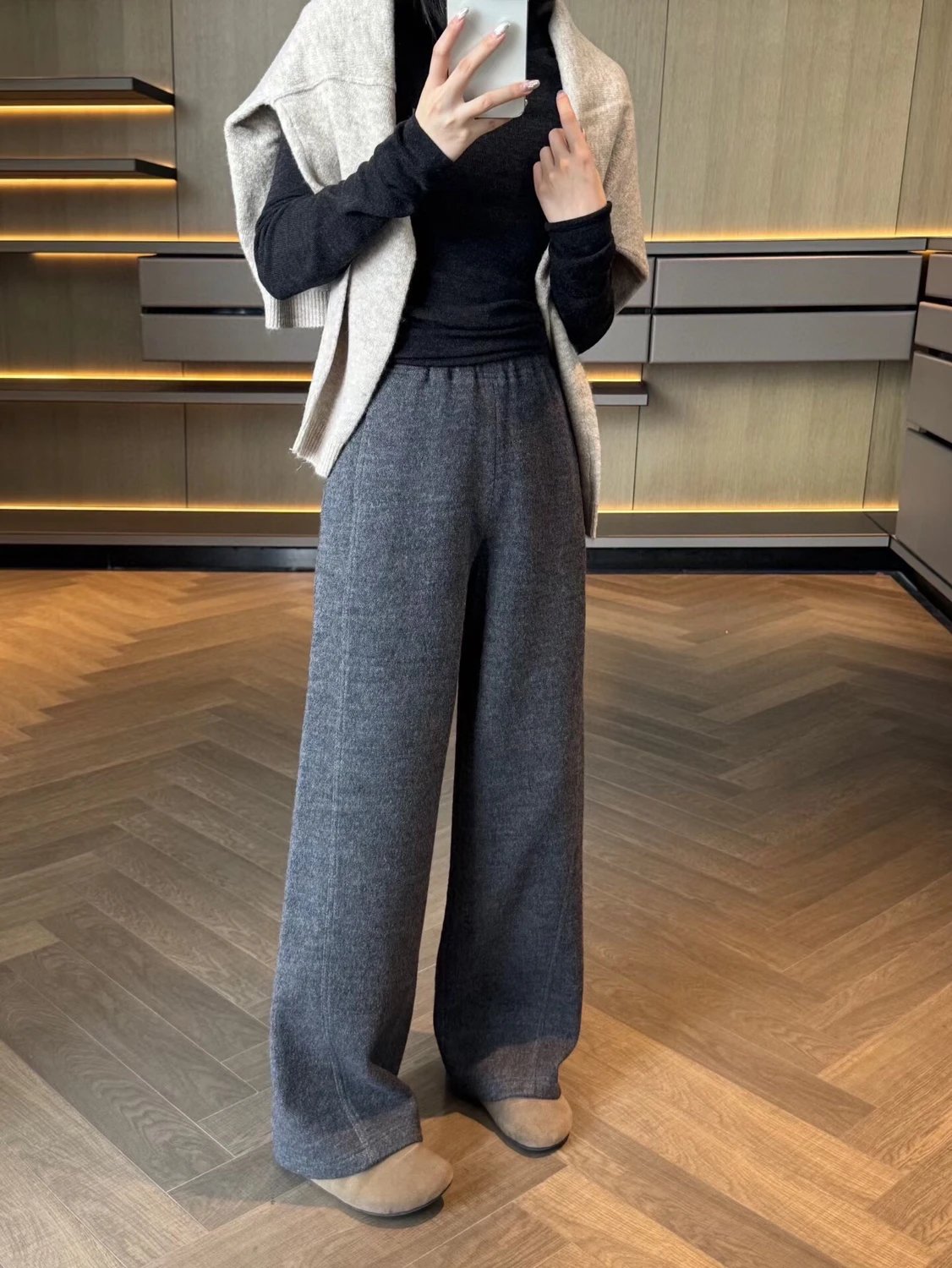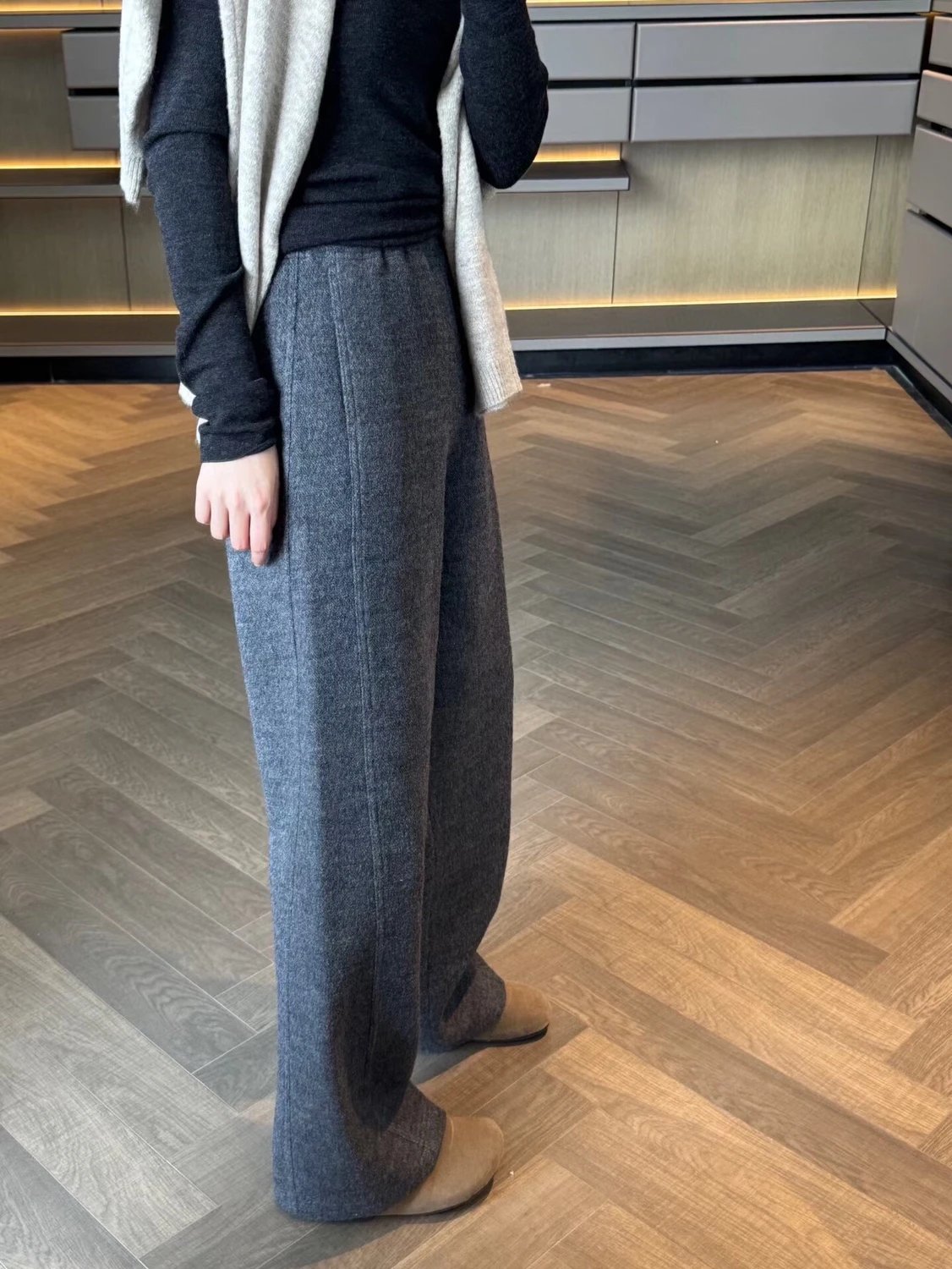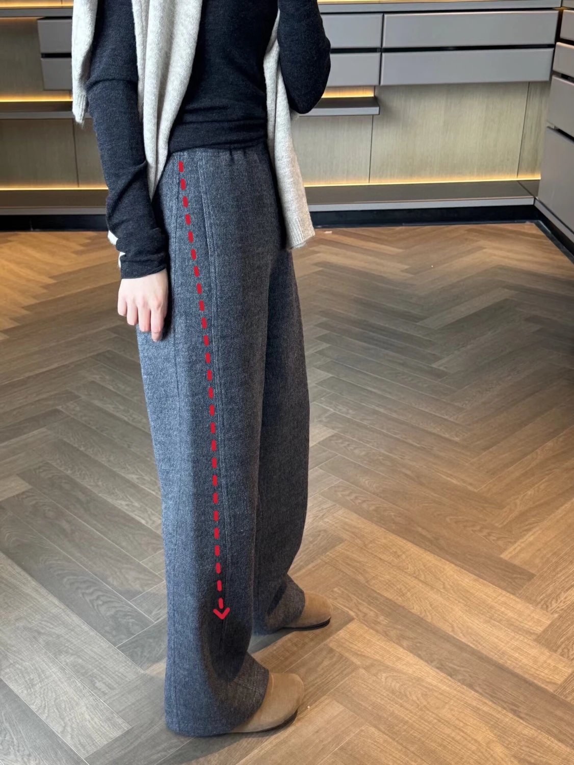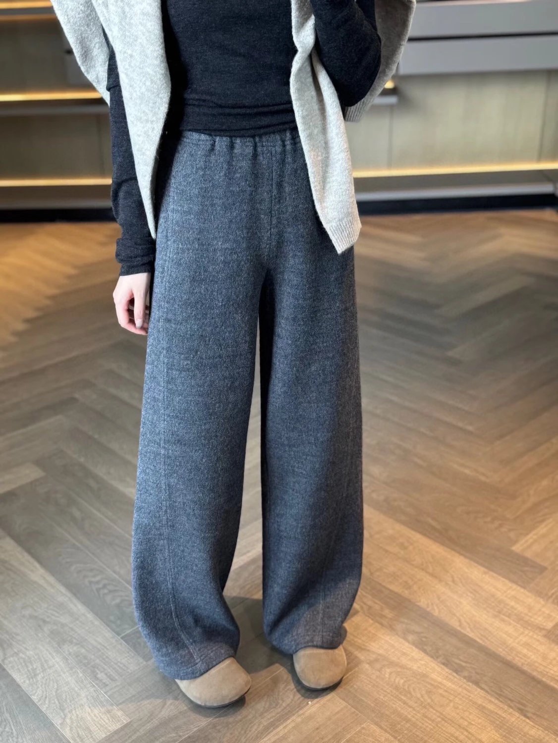 必入神裤! zhi家羊毛裤 强缩羊毛!弧形松紧腰裤 显瘦拉腿