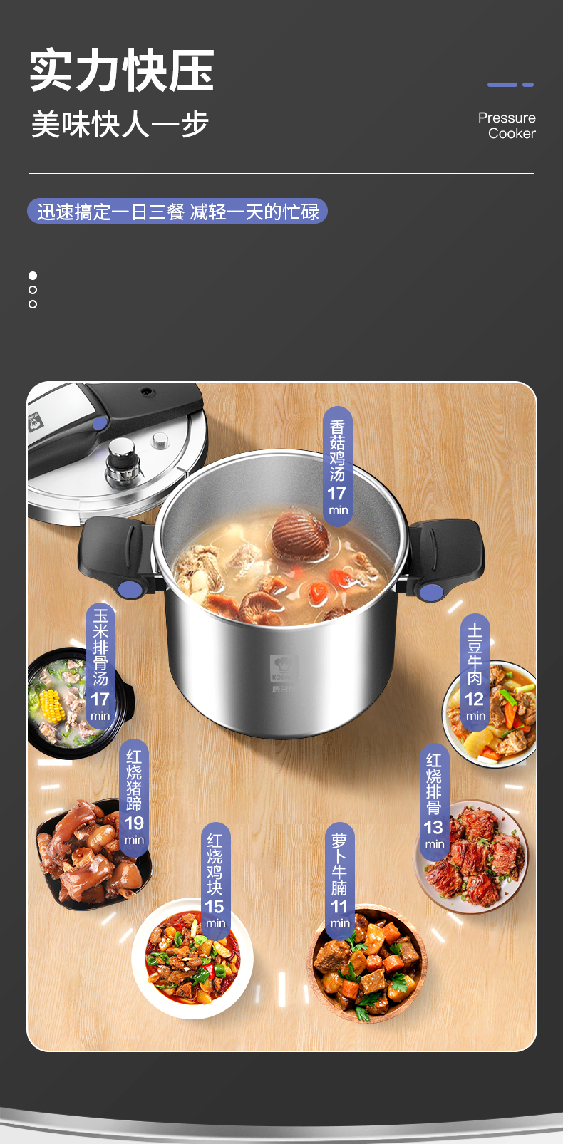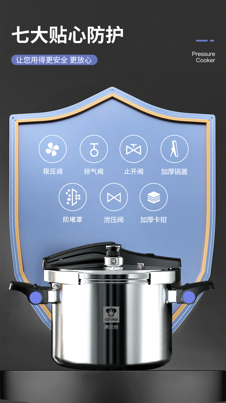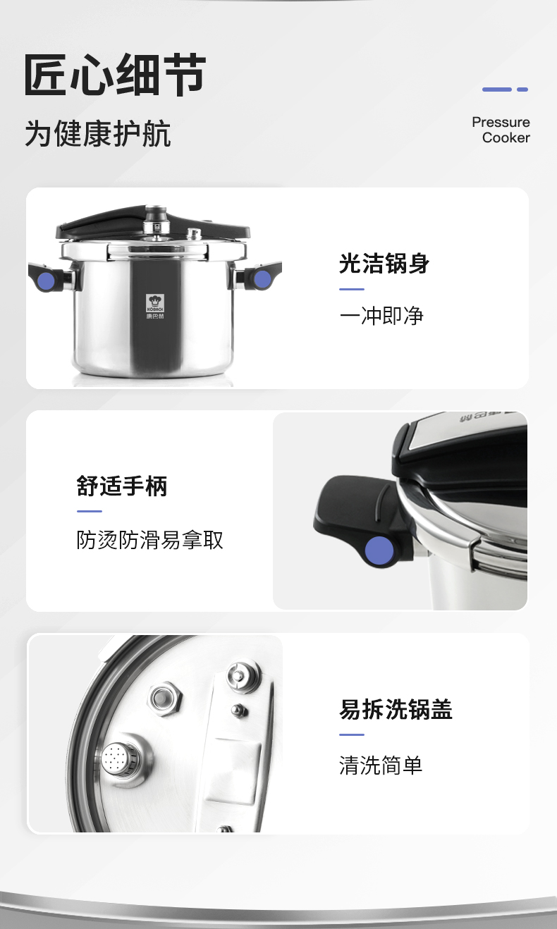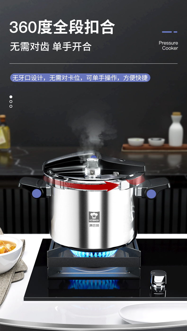 康巴赫新款高压锅压力锅304不锈钢 可立锅盖