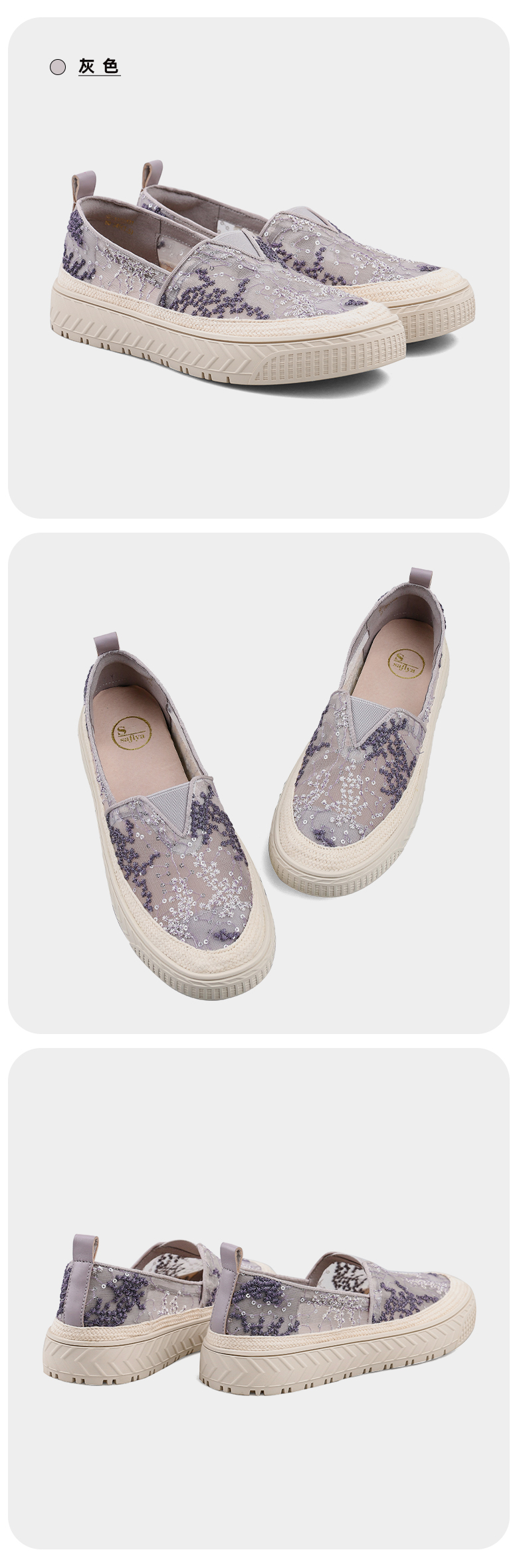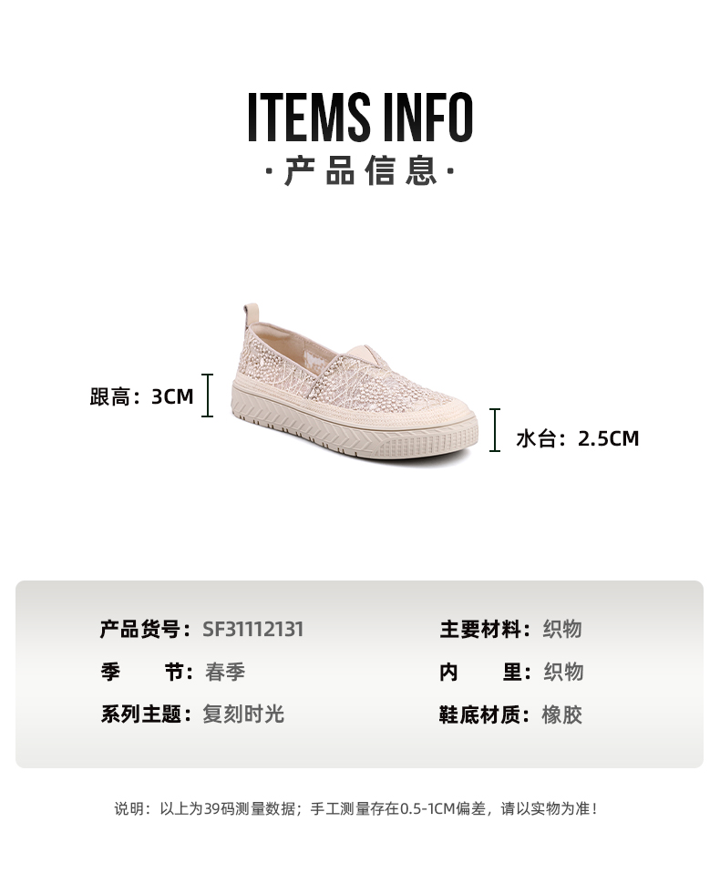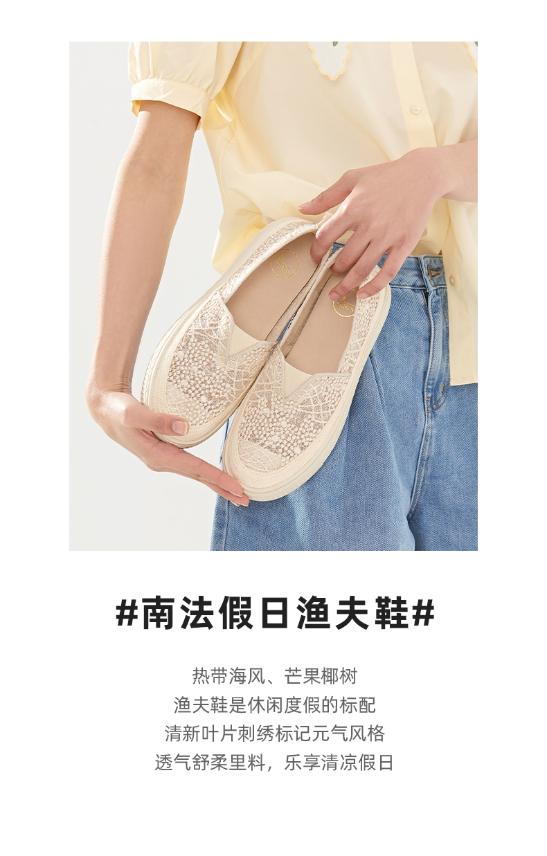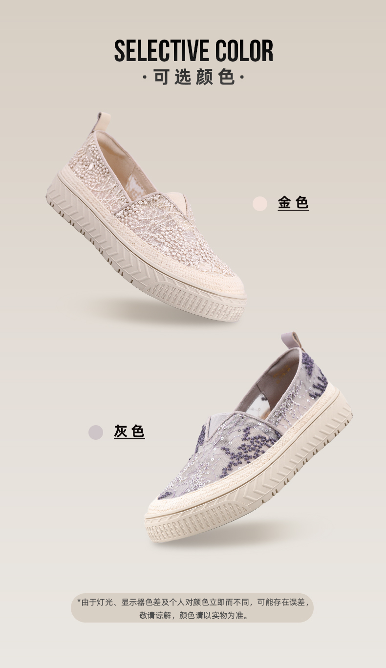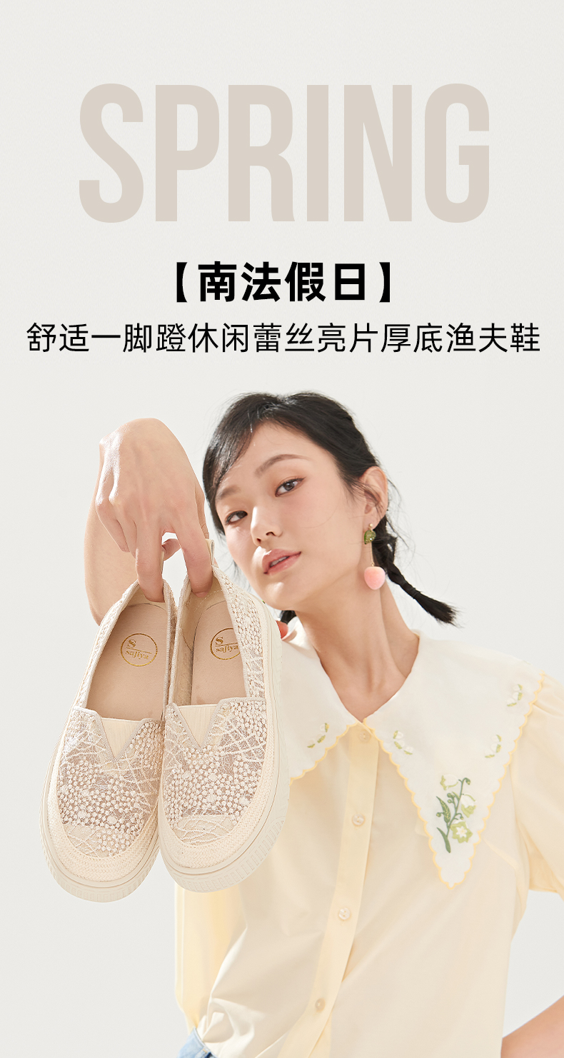 Safiya索菲娅 2023春季舒适一脚蹬休闲蕾丝亮片厚底渔夫鞋SF31112131
