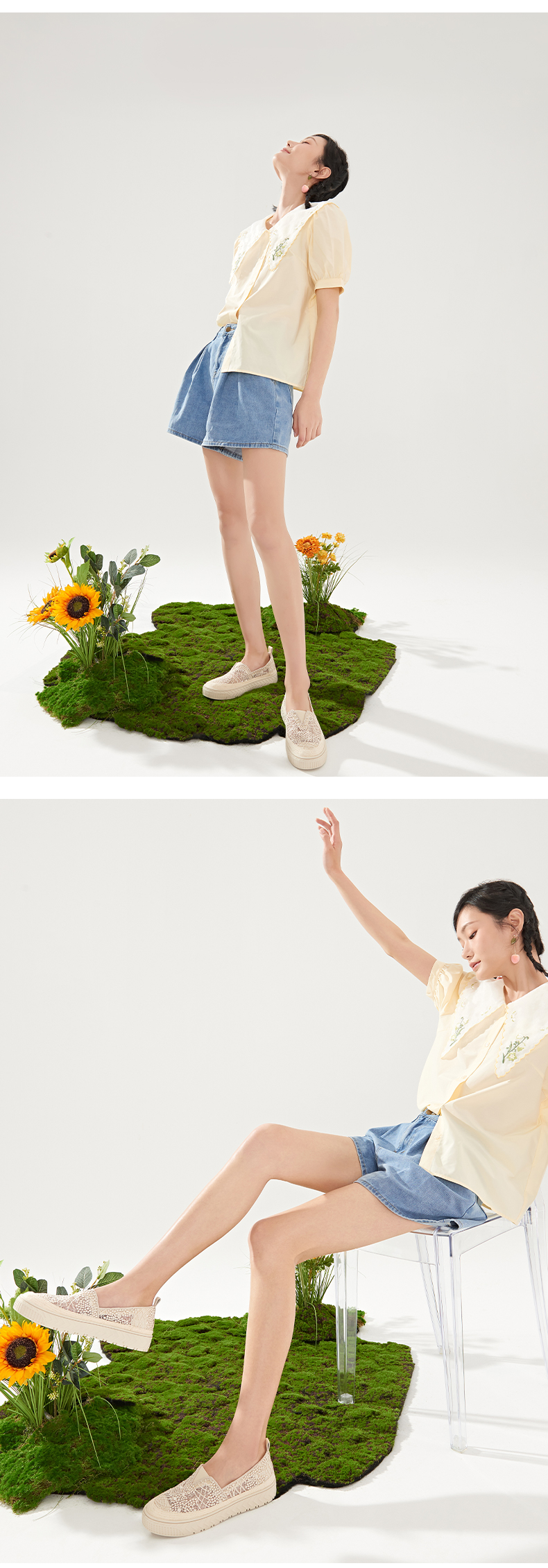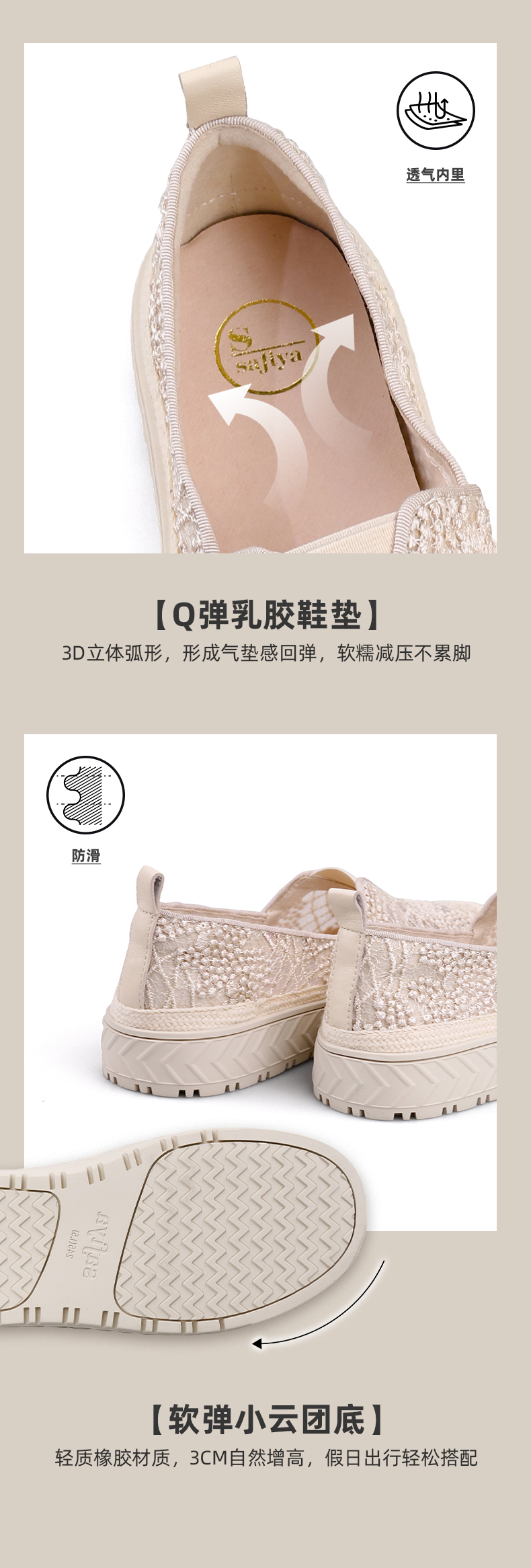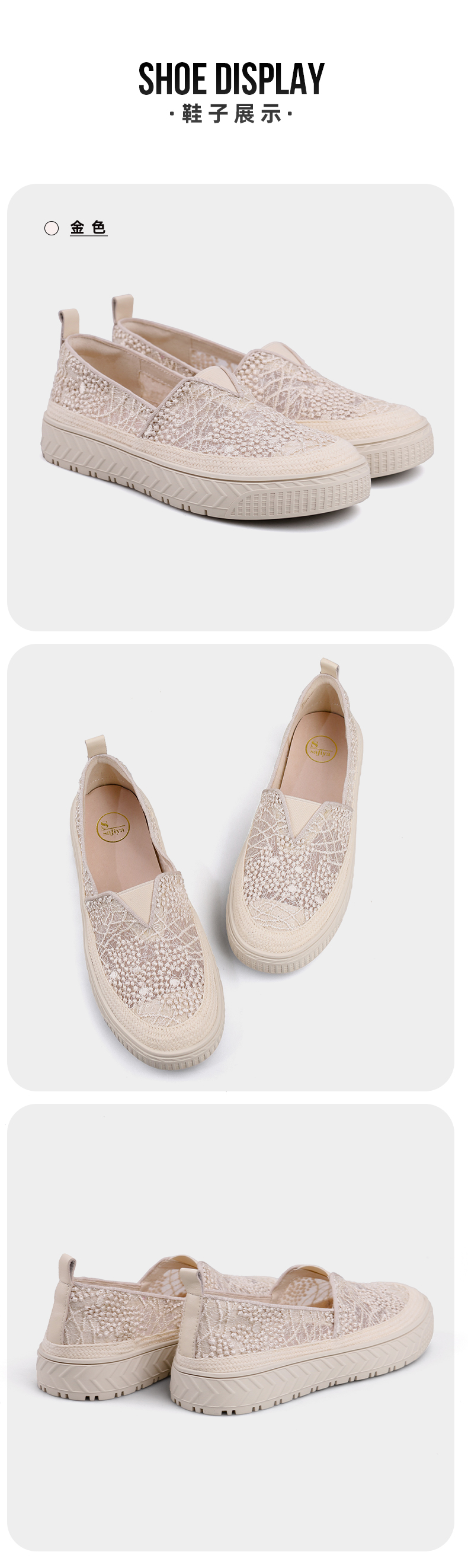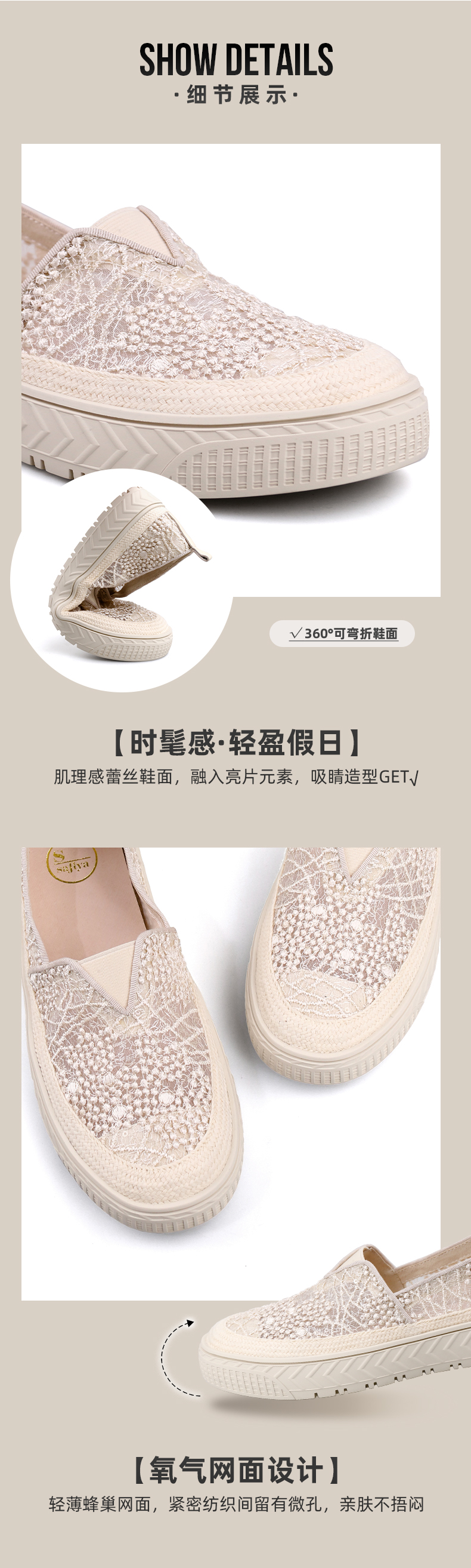 Safiya索菲娅 2023春季舒适一脚蹬休闲蕾丝亮片厚底渔夫鞋SF31112131
