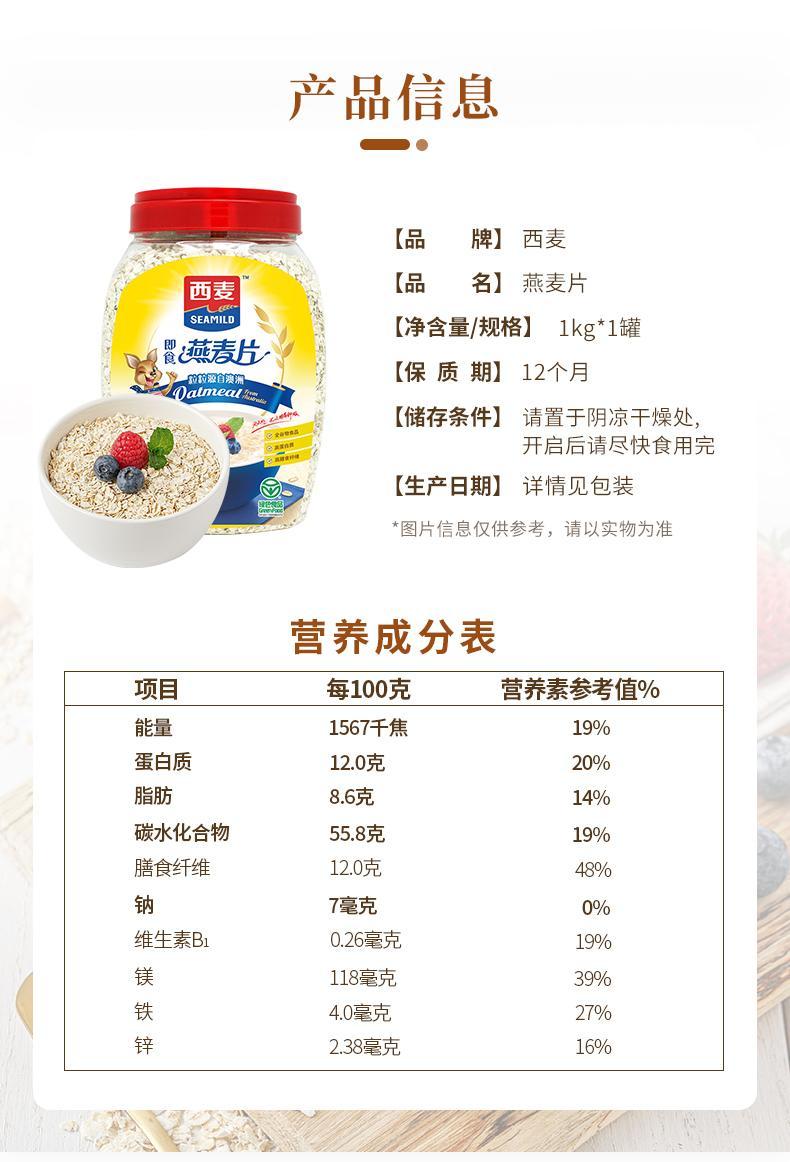 西麦燕麦原味1kg桶即食燕麦早餐膳食纤维全谷物营养代餐绿色食品