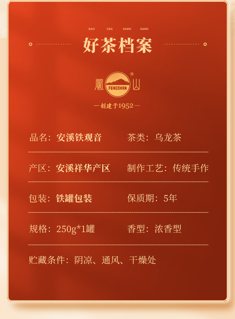 凤山 FS009铁观音 浓香型 炭焙熟茶 罐装250g