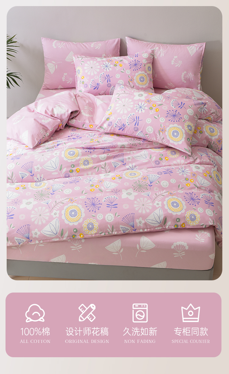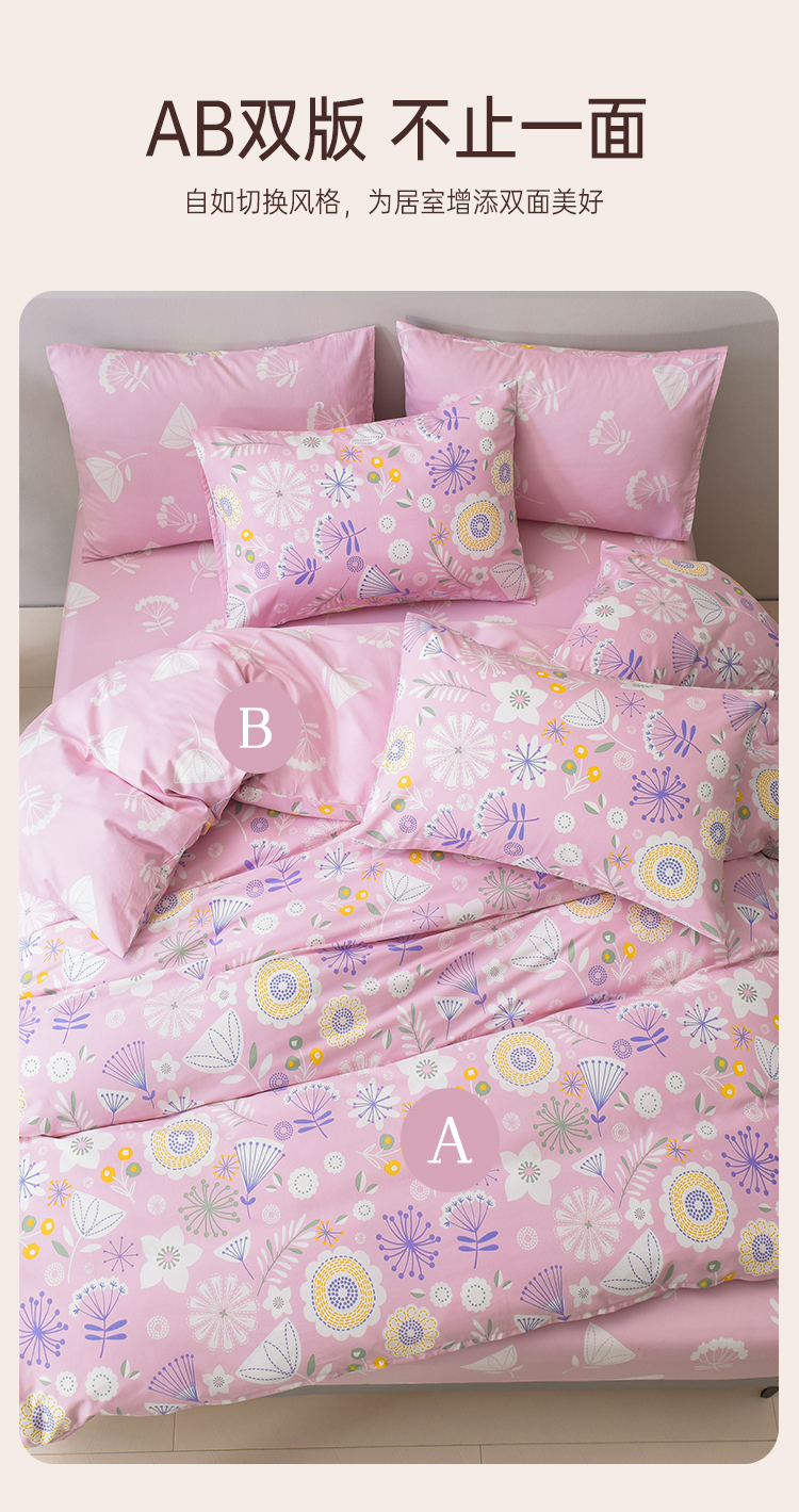 2025年春夏新品雅芳婷精梳全棉四件套田园印花AB双面纯棉被套套件