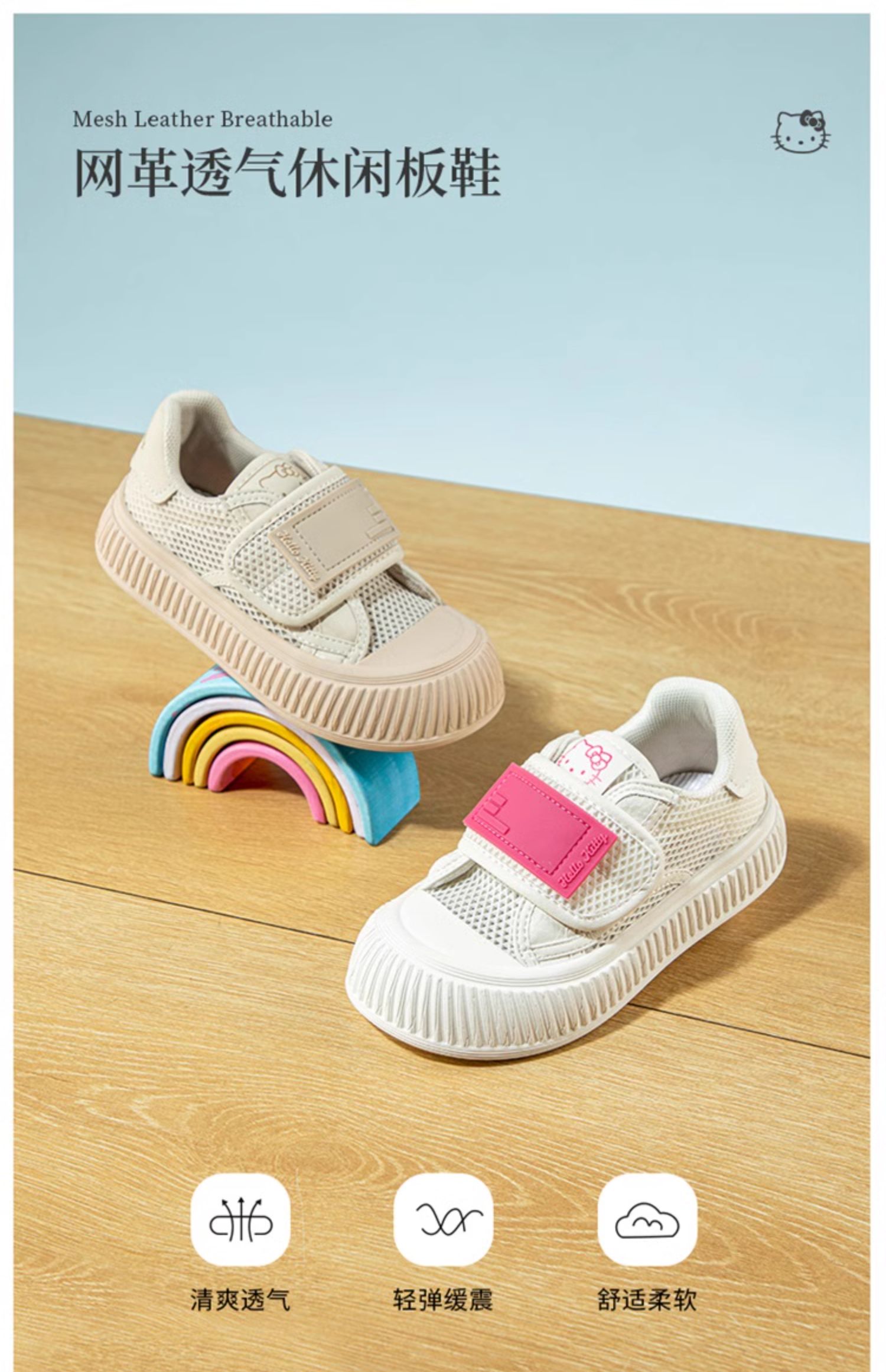 hello kitty童鞋女童透气运动鞋夏季儿童网鞋女孩休闲鞋28-35 K4526709