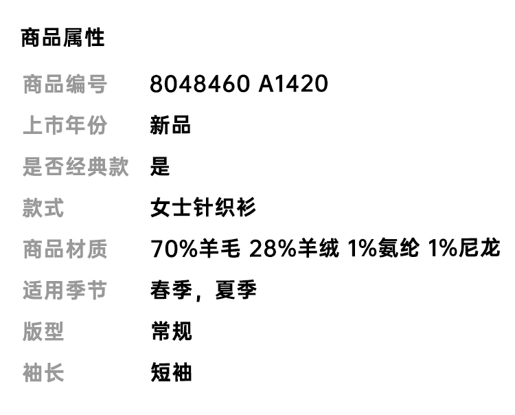 BURBERRY 巴宝莉 女士圆领小鹿嵌花羊毛混纺短袖针织衫 卡其色 8048460 A1420