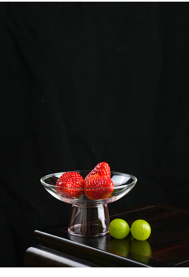 玻璃茶点盘高脚盘糕点盘高足小号精致茶点盘简约高脚点心盘家用干果碟