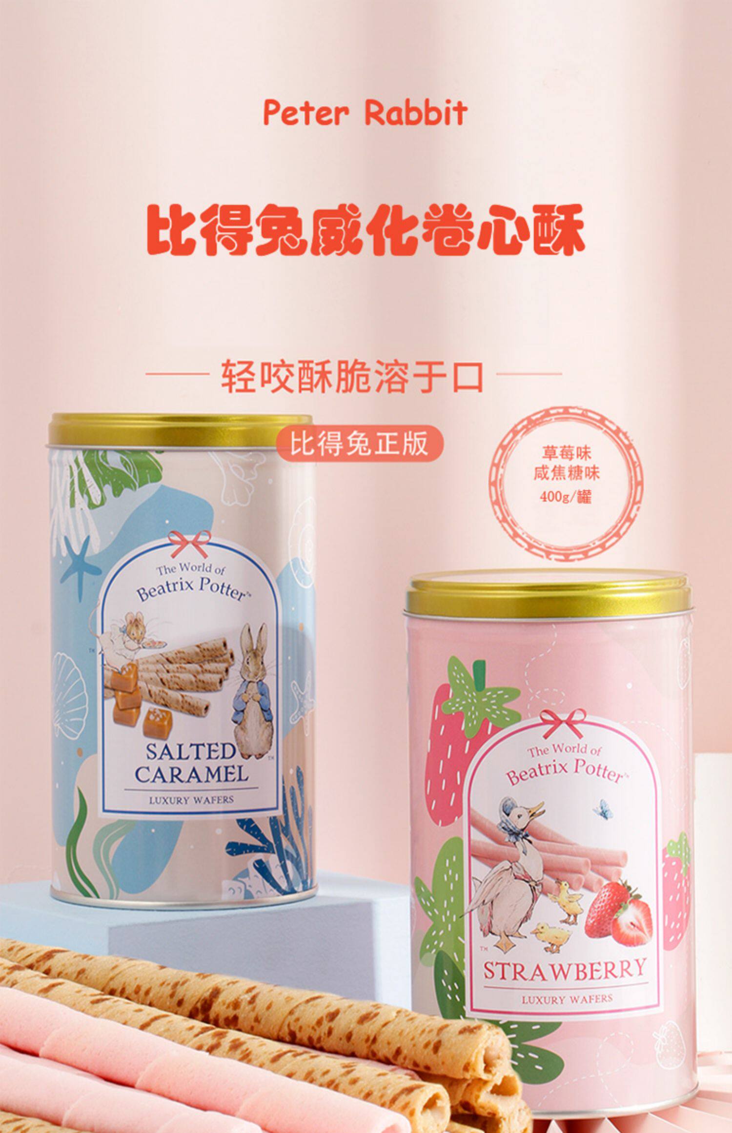 PETER RABBIT比得兔 威化卷心酥400g(草莓味/咸焦糖味)