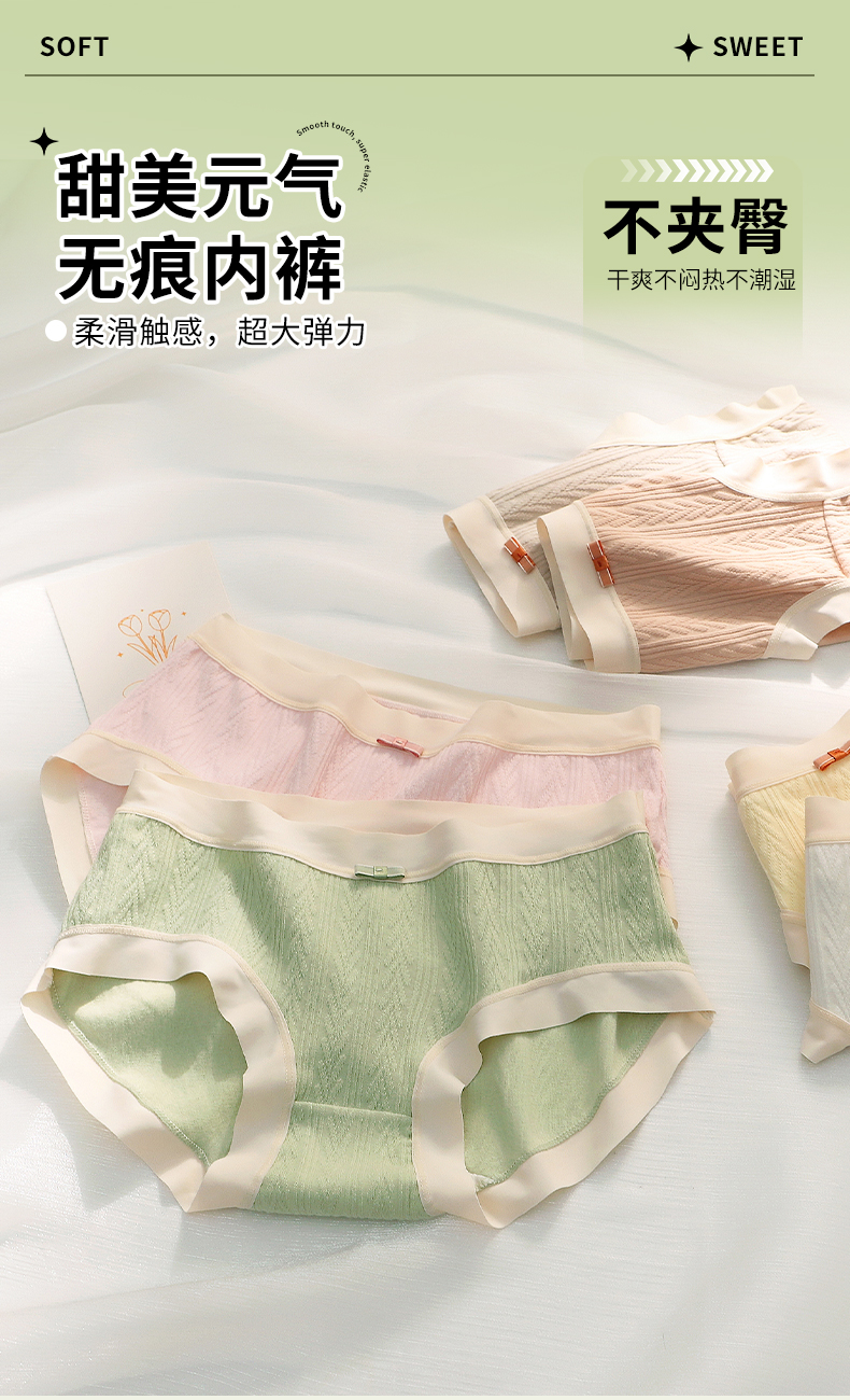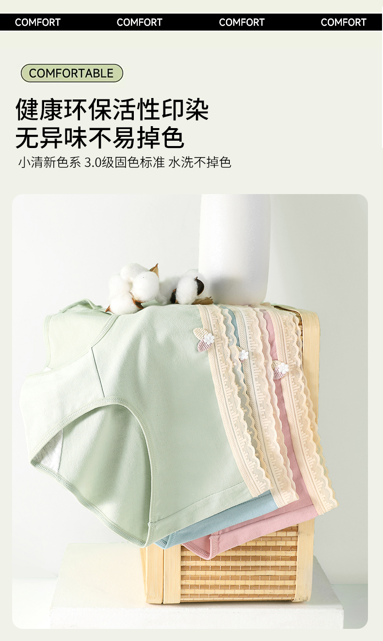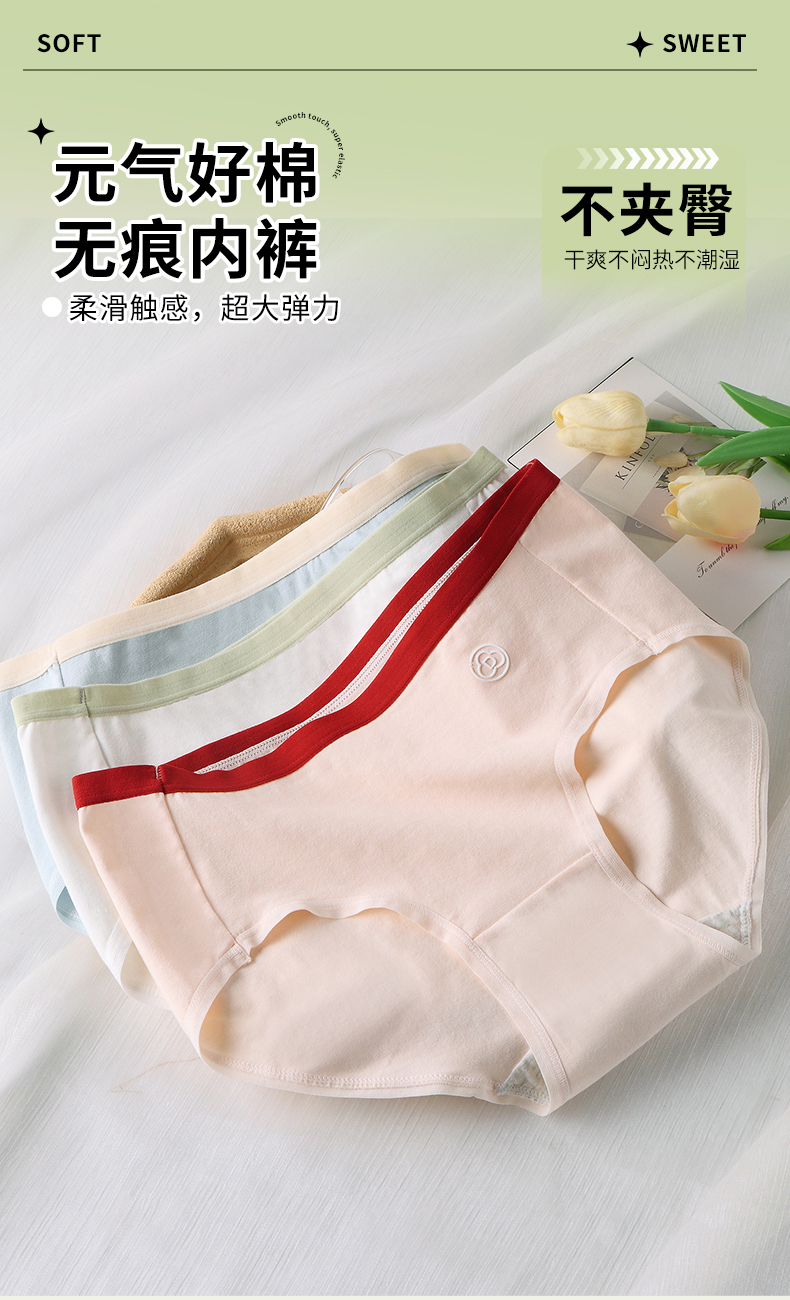 女士弹力棉舒柔棉精梳棉撞色提花花边大红鸿运三角内裤2846/2933/2934/2935/2936/2937/2939/2941
