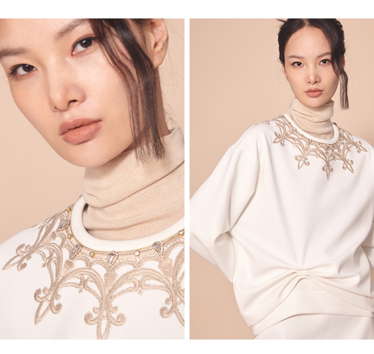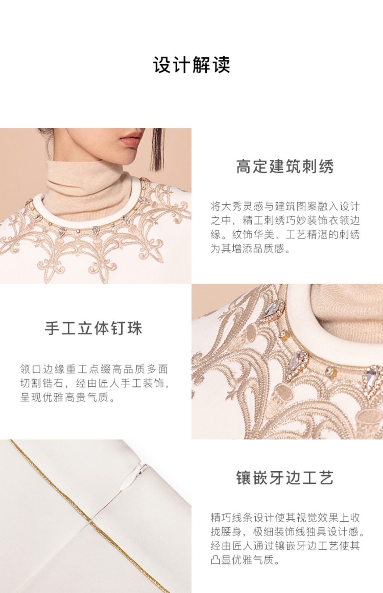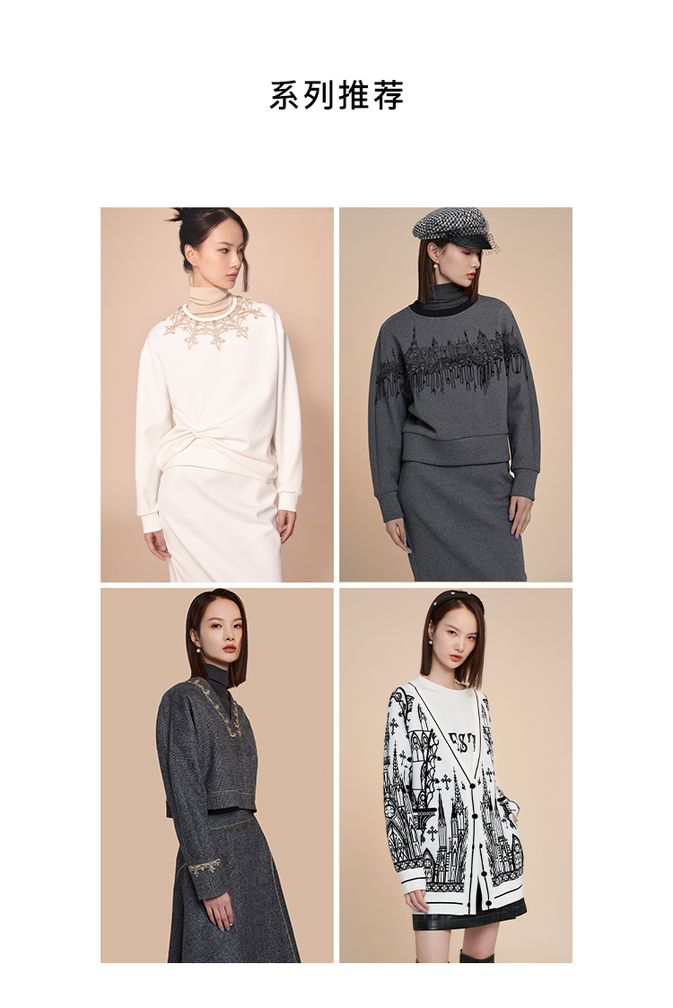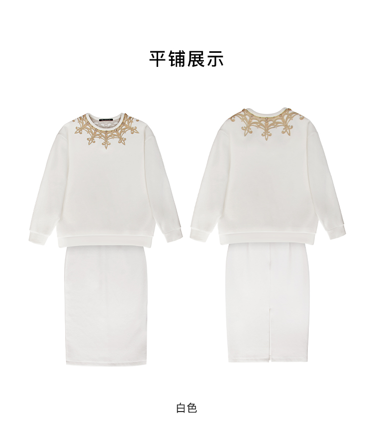 RSG郭培成衣品牌高定建筑设计钉珠刺绣白色卫衣通勤套装秋冬