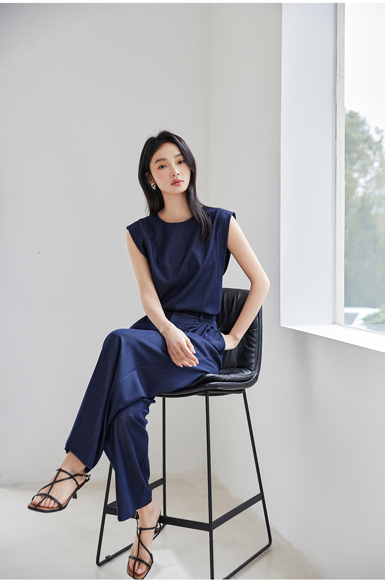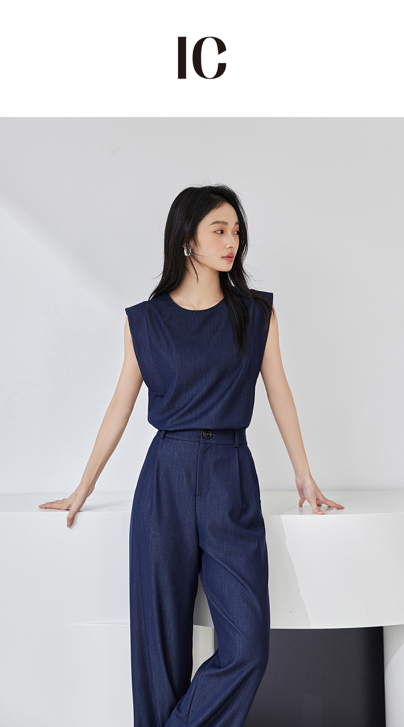 *IC时尚气质韩系初春穿搭一整套无袖直筒裤上下套装女