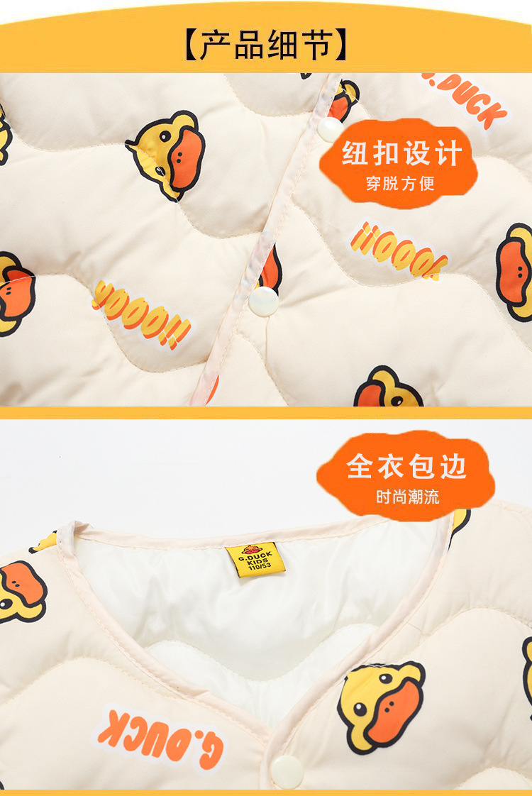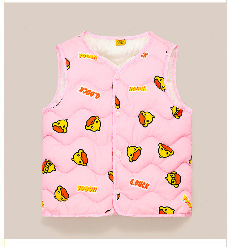 小黄鸭儿童男童女童棉马甲秋冬季中小童宝宝坎肩加厚打底马夹背心