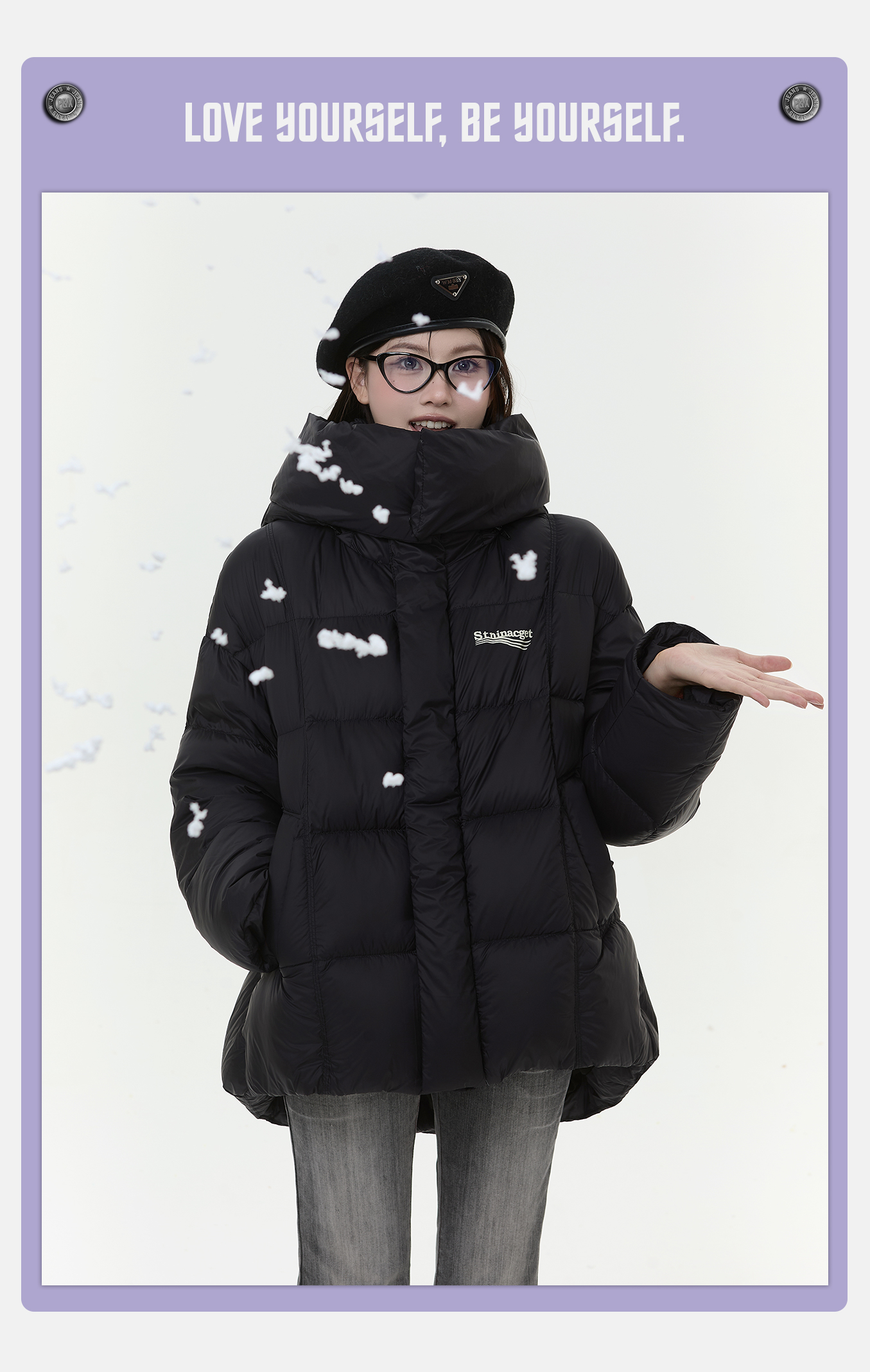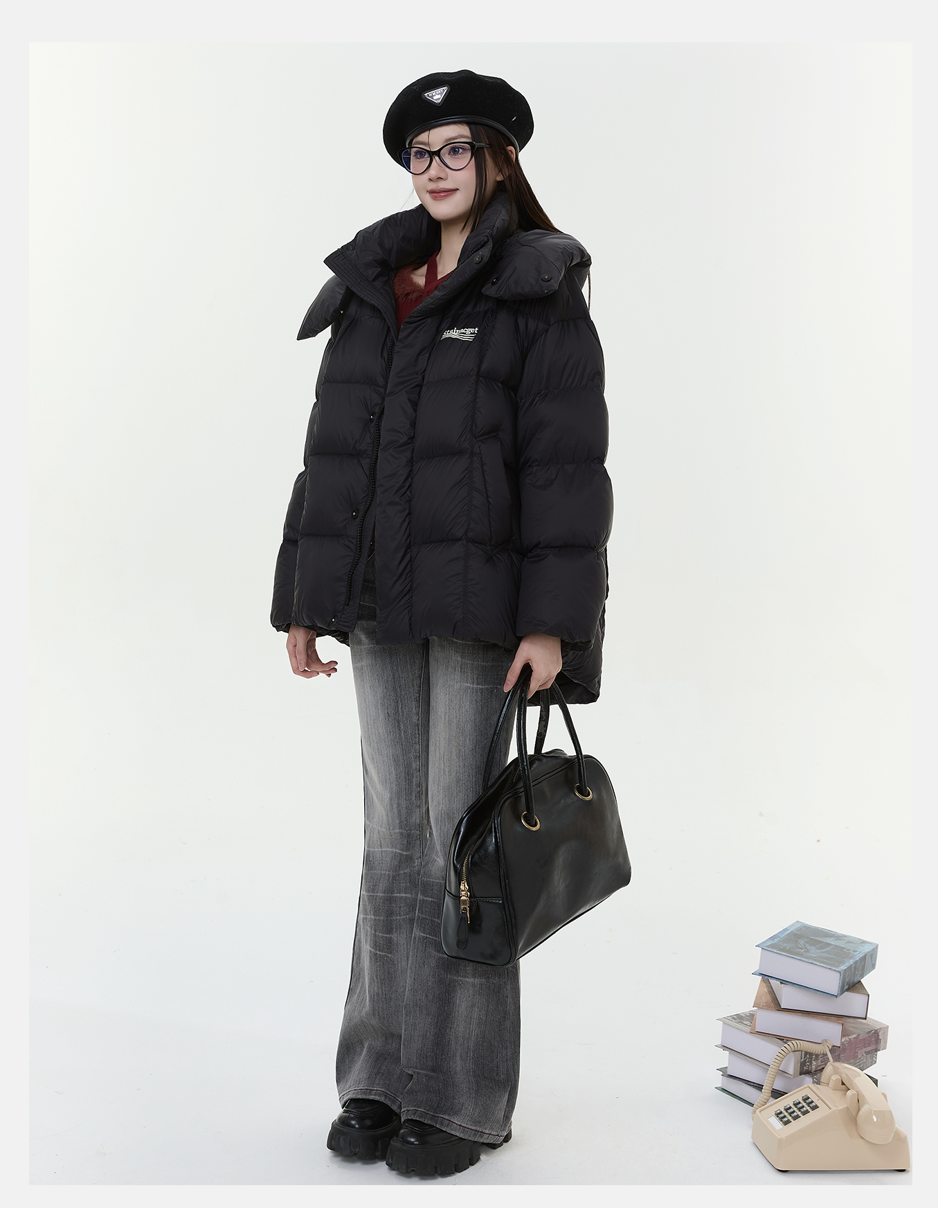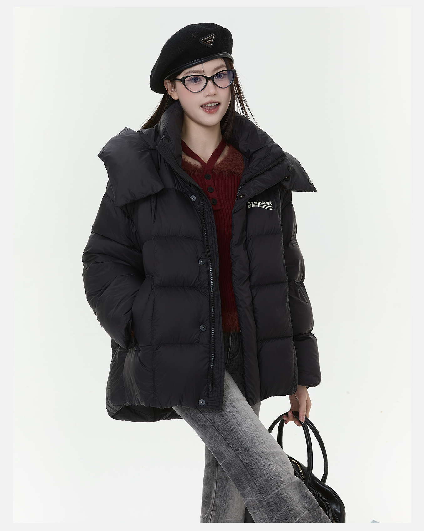 P&X设计师女装2025冬季宽松简约连帽短款羽绒服825424177 黑色