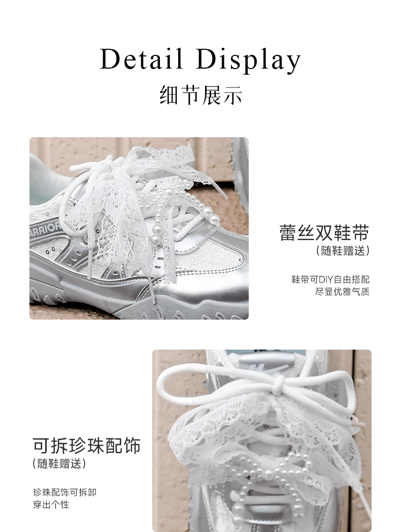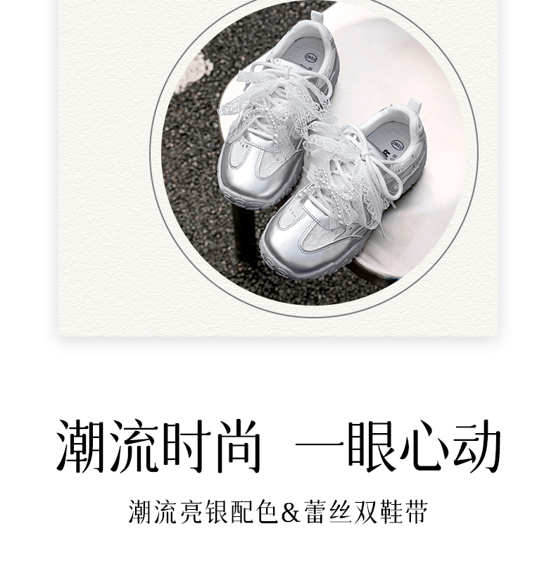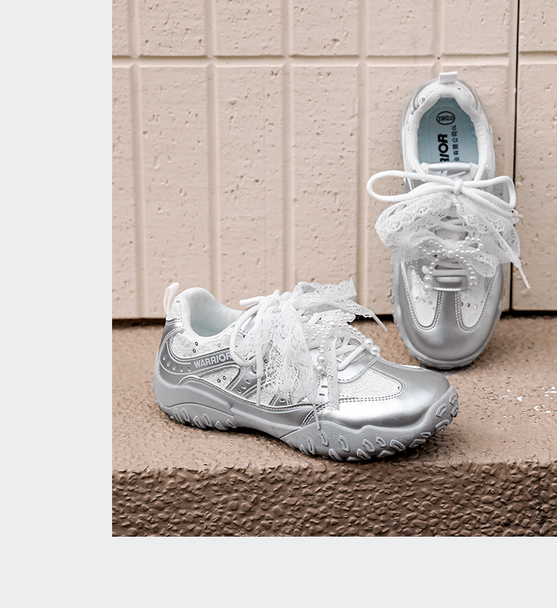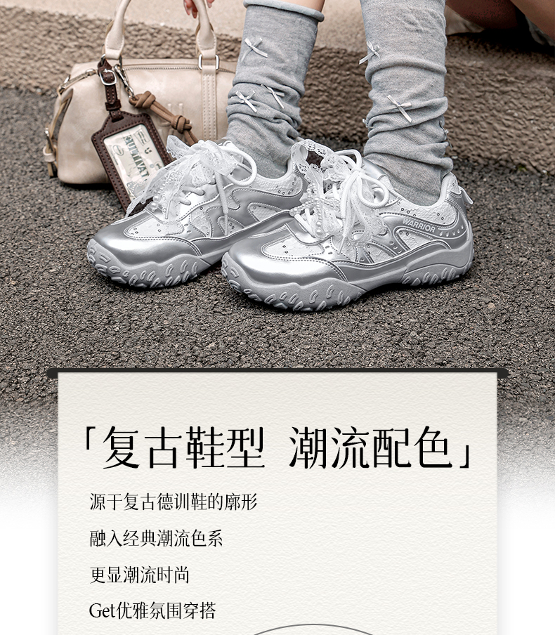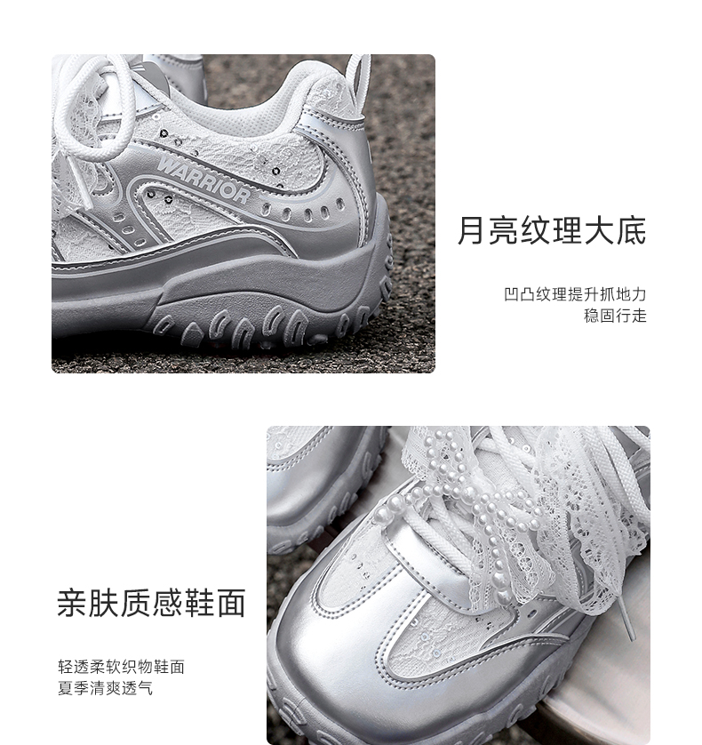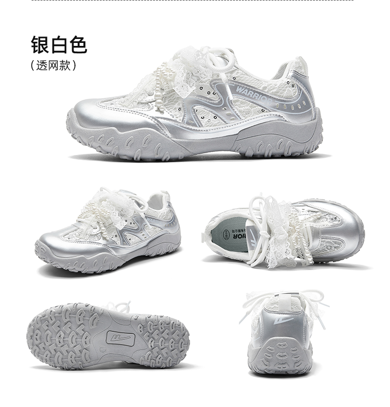 回力女鞋秋季芭蕾德训鞋银色鞋子女款月牙薄底珍珠蕾丝休闲运动鞋