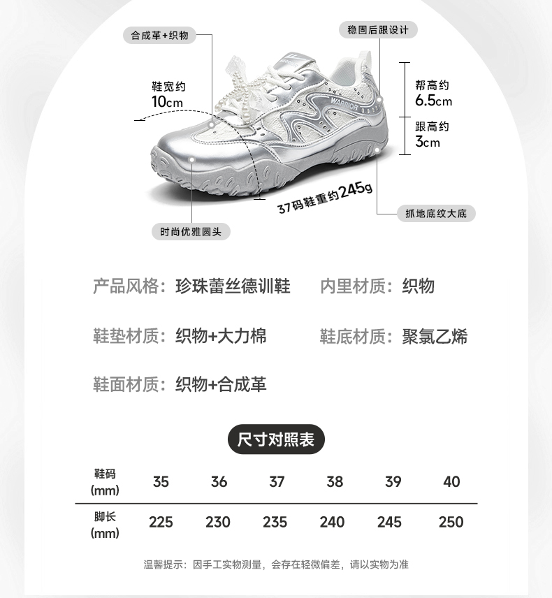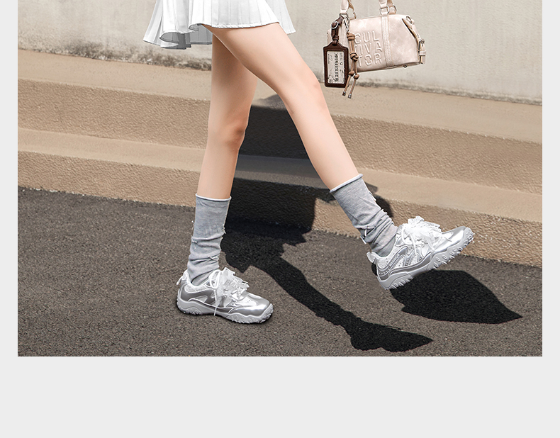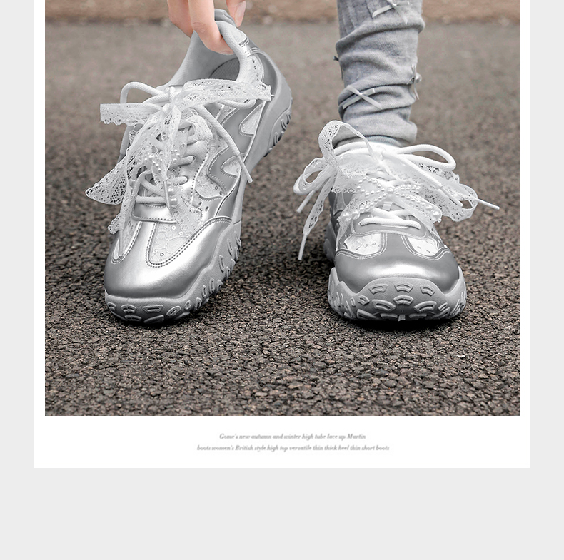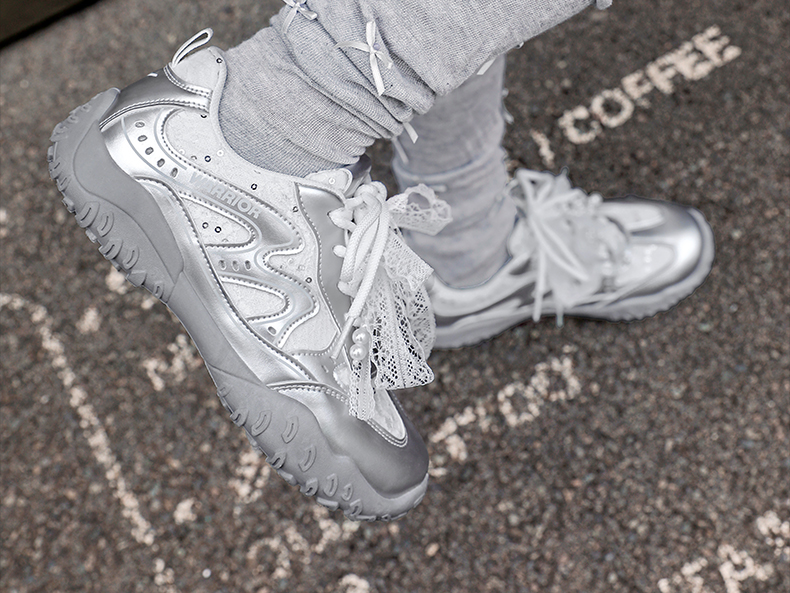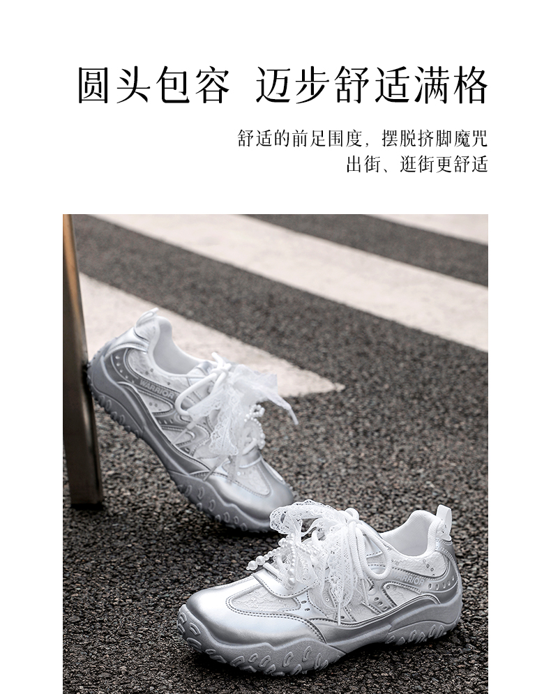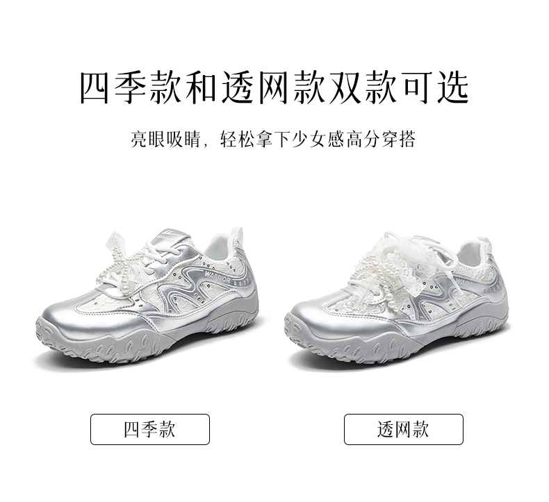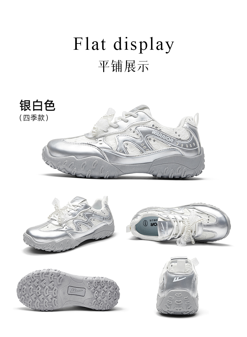 回力女鞋秋季芭蕾德训鞋银色鞋子女款月牙薄底珍珠蕾丝休闲运动鞋