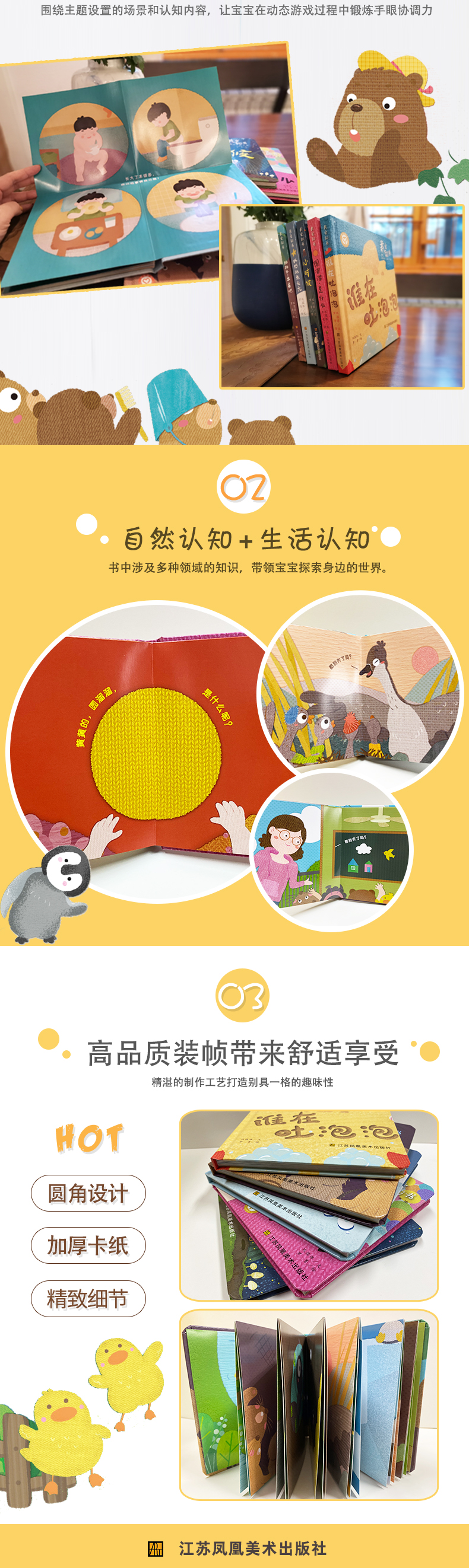 《我爱翻书系列》是在孩子处于认知阶段时互动性很强的亲子绘本。其中《我想快点长大》的故事是呈现了小动物们都想快快长大,做一些成年动物能做的事情。在*后的页面中表现朋友们也迫切地想要快快长大,像爸爸妈妈那样能干。希望在重复的简单语言、童心童趣的小故事中使幼儿欢乐认知并受到美的潜移默化的浸染和滋润。