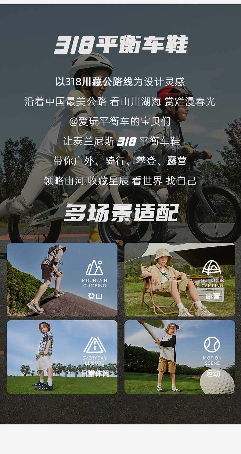 泰兰尼斯儿童运动鞋秋季新款男童318平衡车鞋轻量舒适户外运动鞋 T01X5C6795