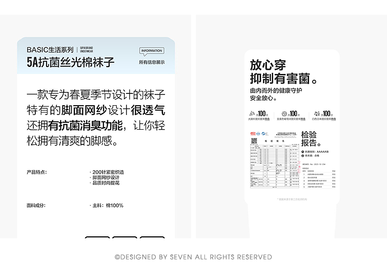 柒牌丝光棉袜子男士中筒袜夏季薄款纯棉透气男式防臭抗菌商务长袜 126F70360
