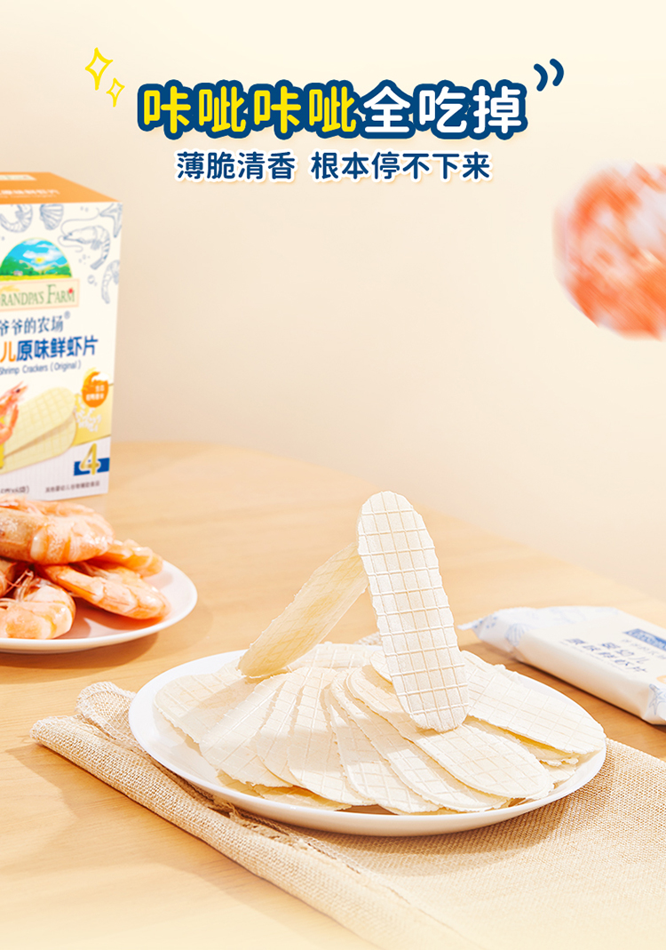 【婴标零食礼包】爷爷的农场原味鲜虾片39g+原味鳕鱼肠90g+芝士鳕鱼肠90g