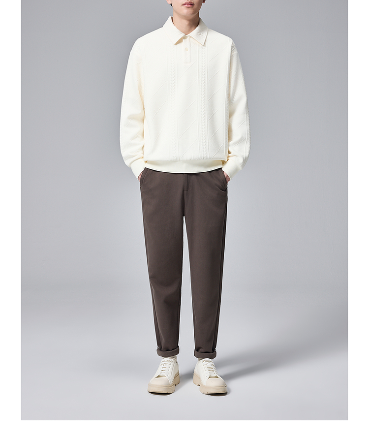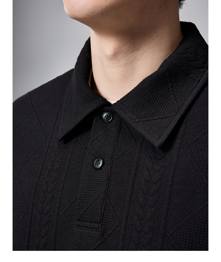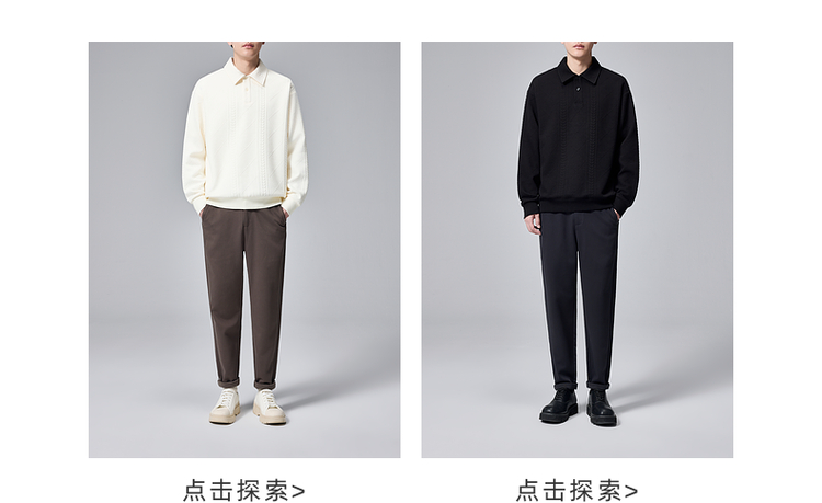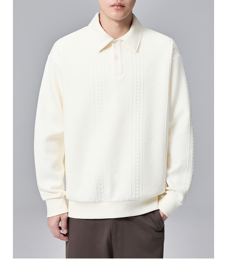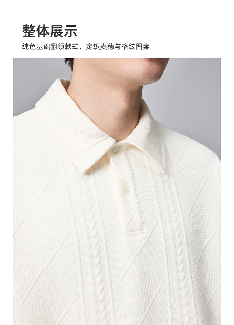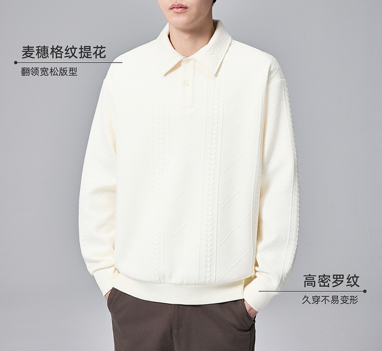 墨麦客男装纯色翻领卫衣男士2025春季新款麦穗格纹休闲上衣男潮