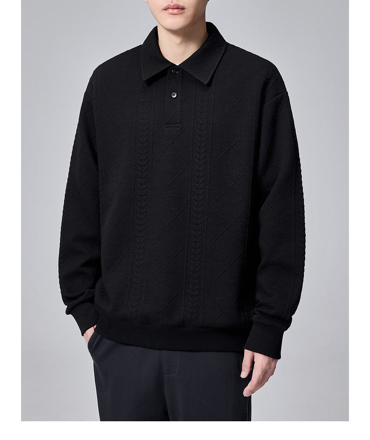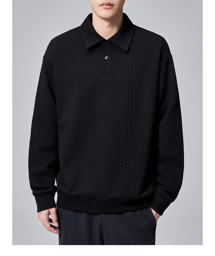 墨麦客男装菱形格提花男士翻领针织衫2024秋季新款撞色休闲毛衣男