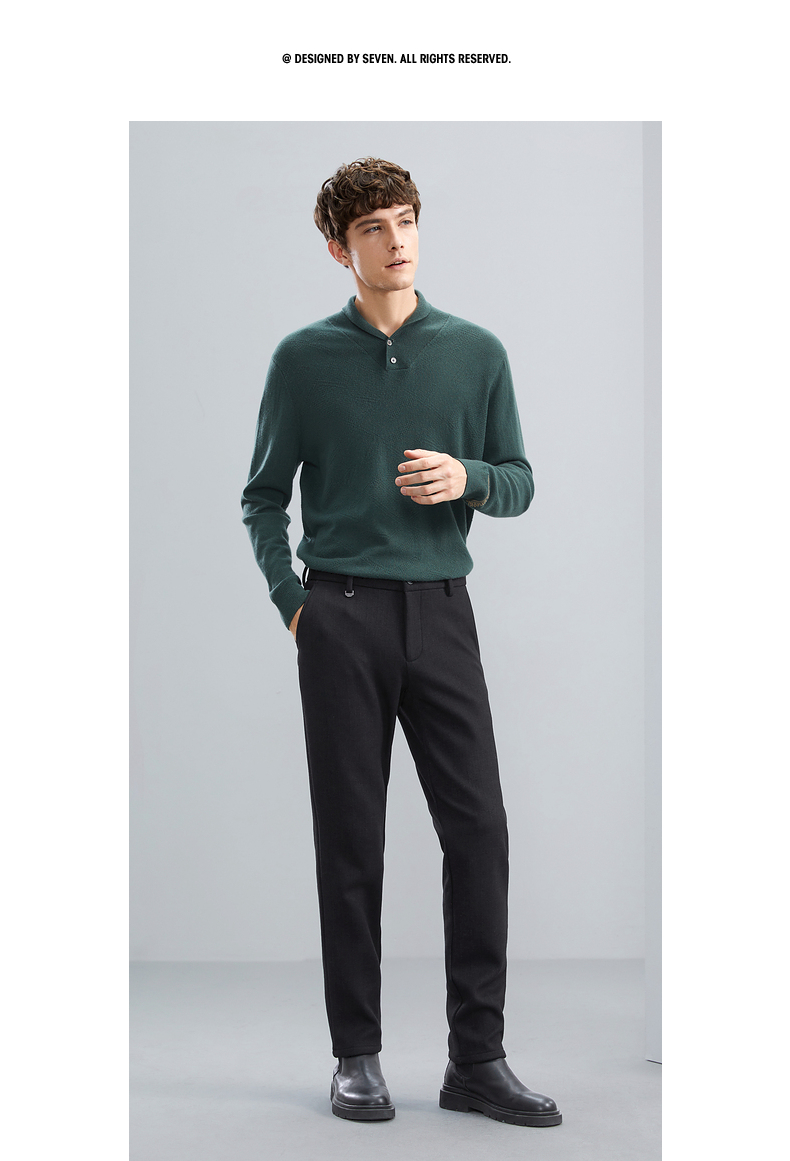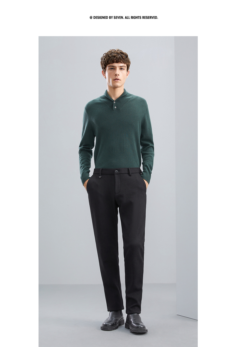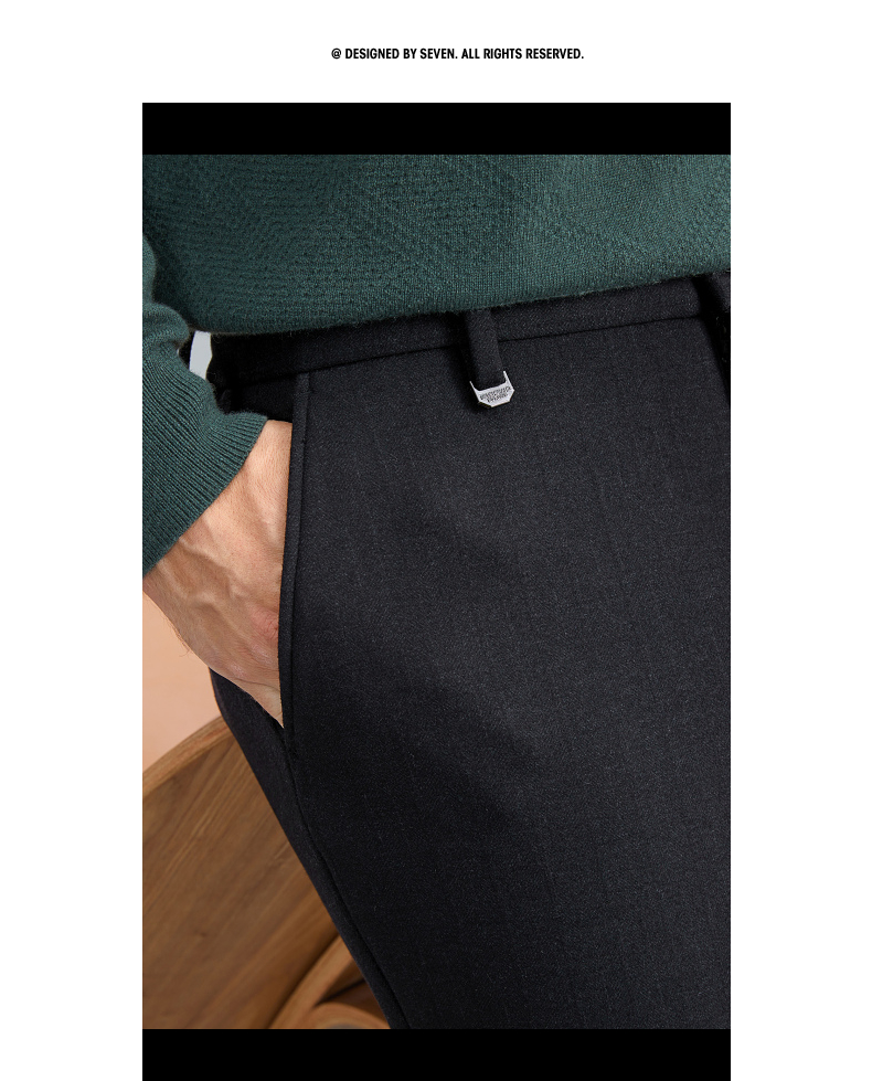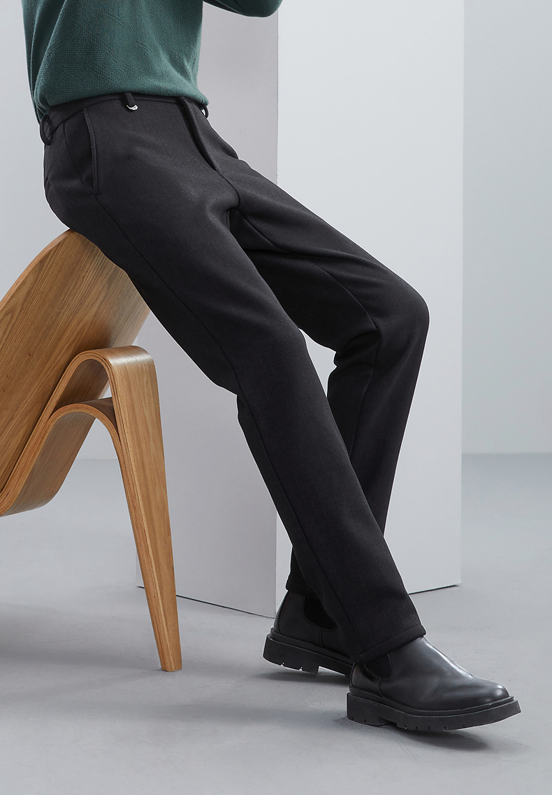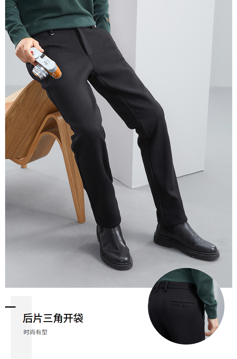 【特价】柒牌男装休闲裤男秋冬厚款商务中青年通勤弹力直筒针织长裤子 125H70750