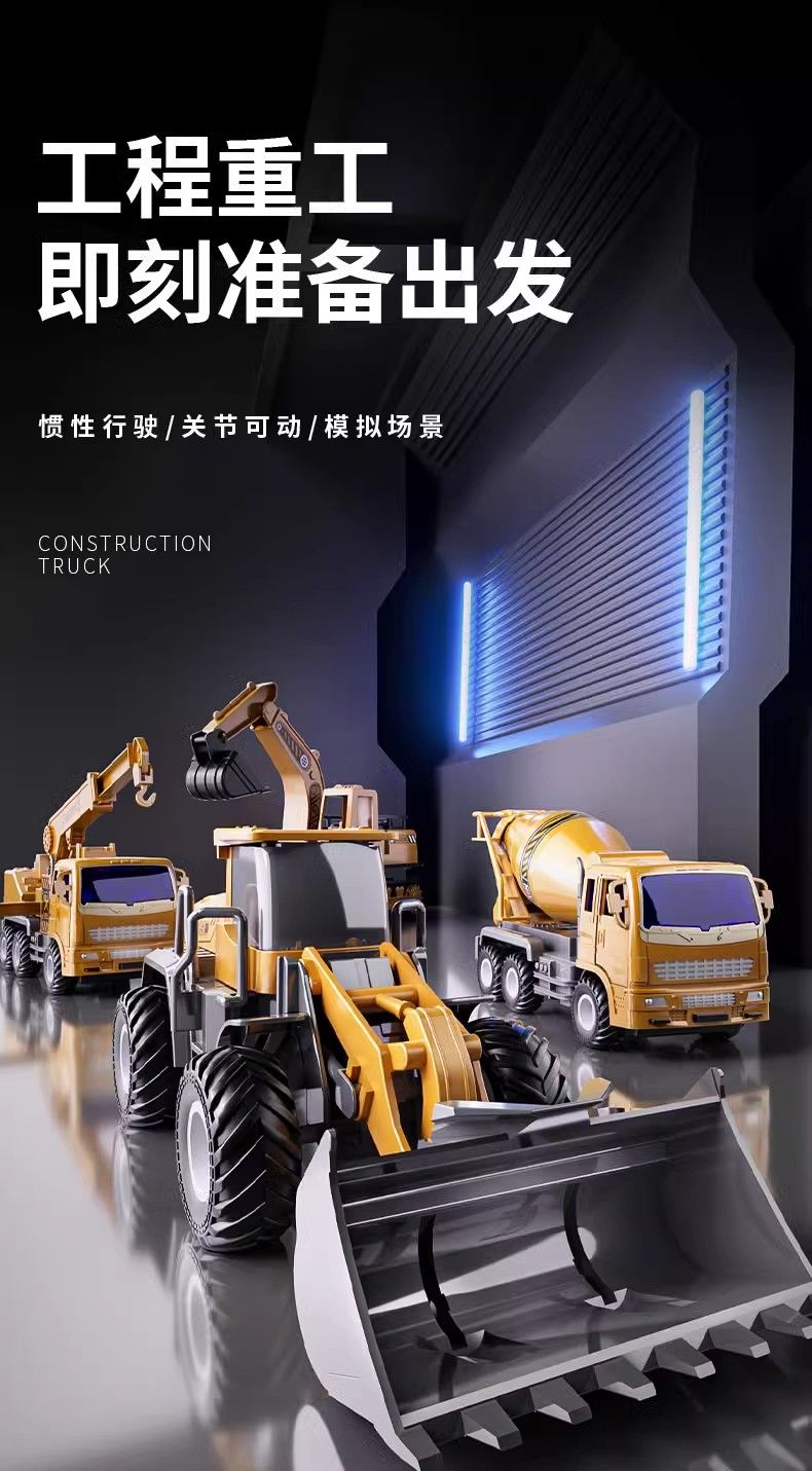 工程玩具车男孩儿童大号工程车挖掘机推土车抓夹机钻地机模型礼物