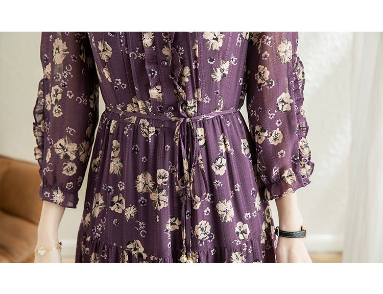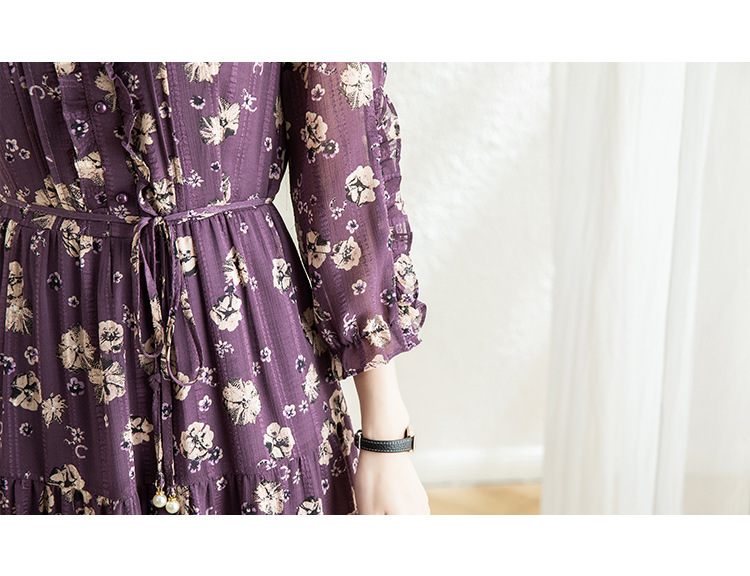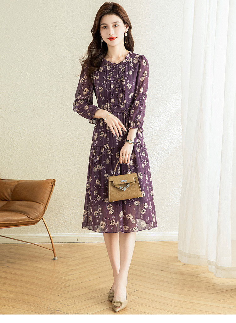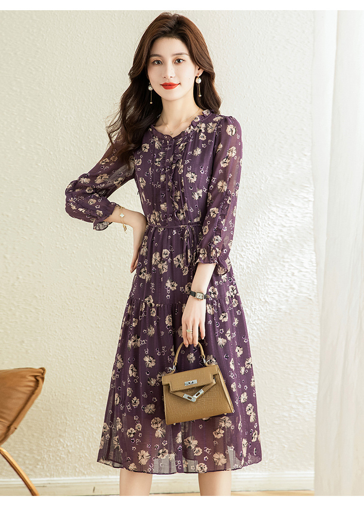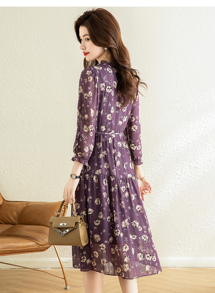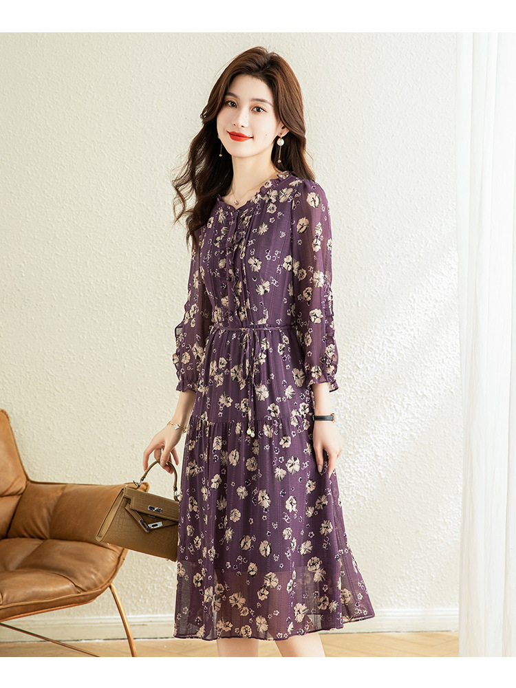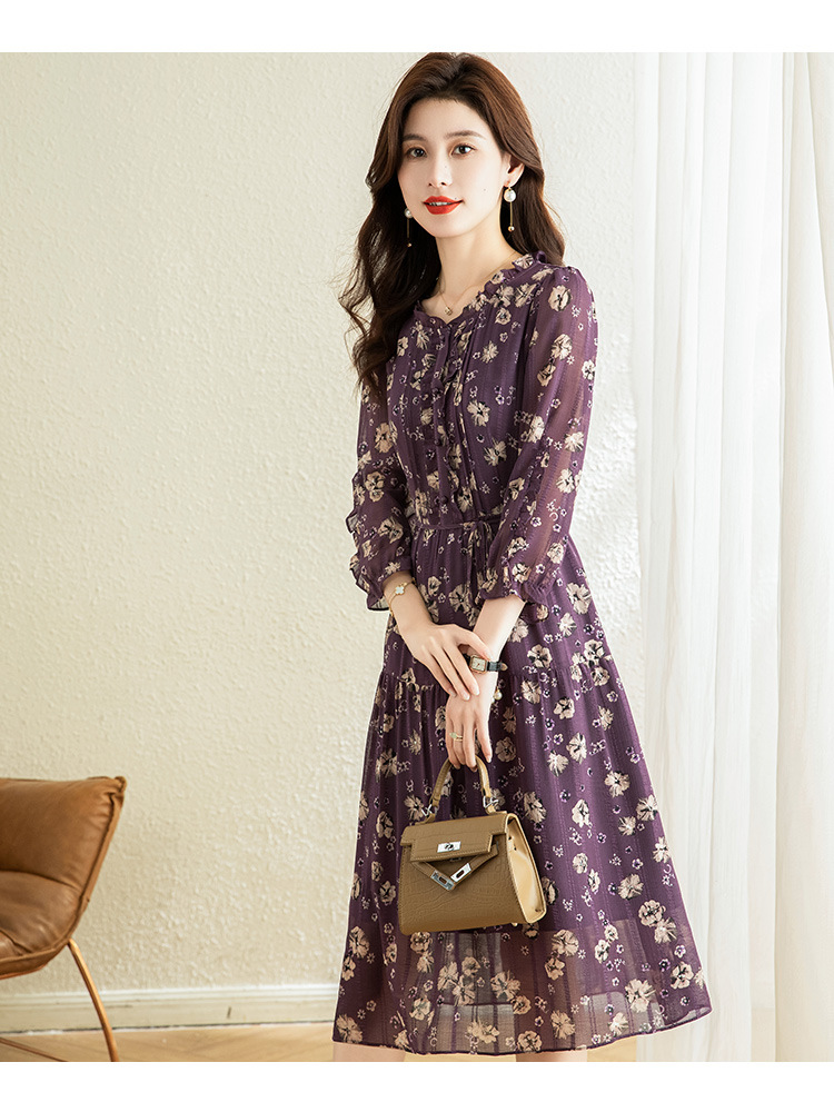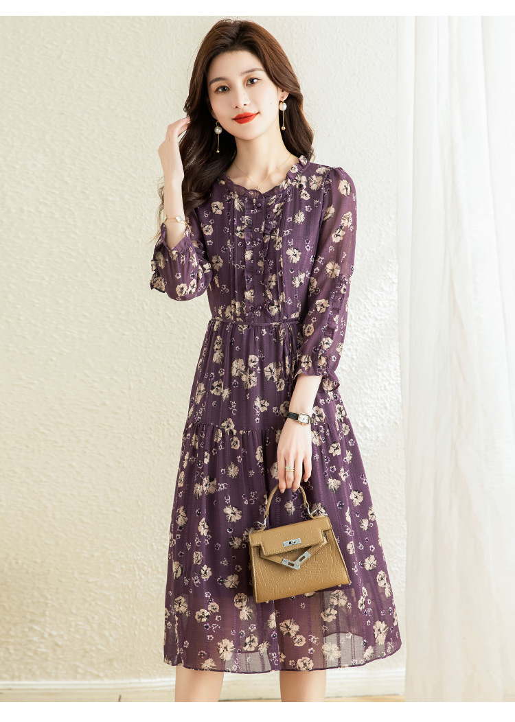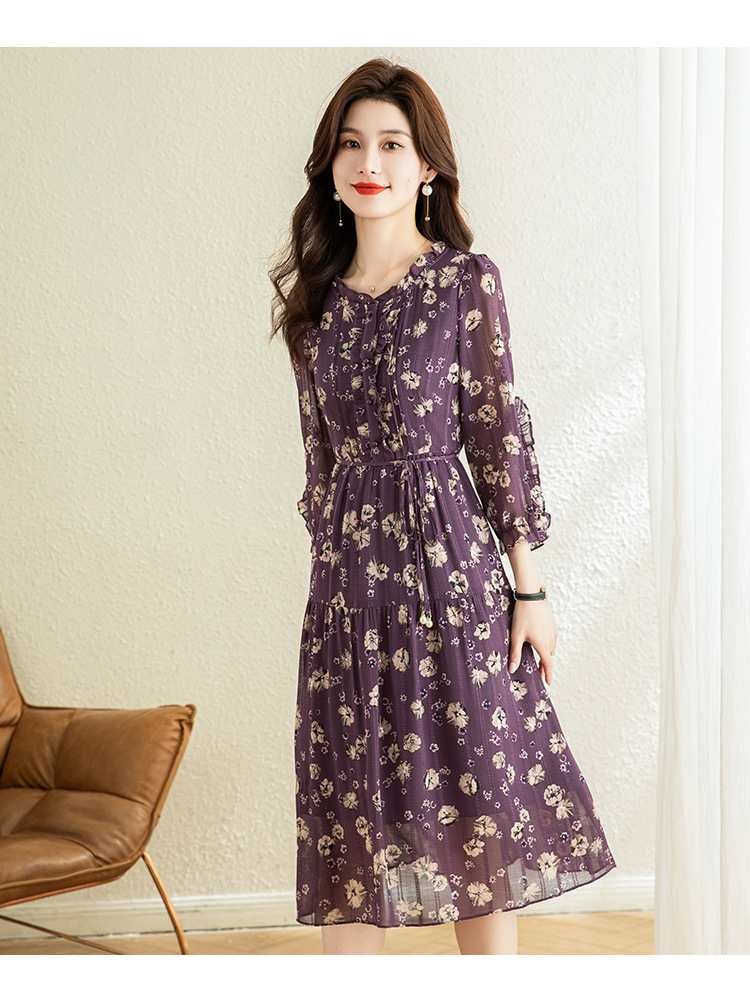 气质优雅,时尚妈妈装中长款A字裙春秋款A字裙印花连衣裙QYM-TB-DS0189-Y